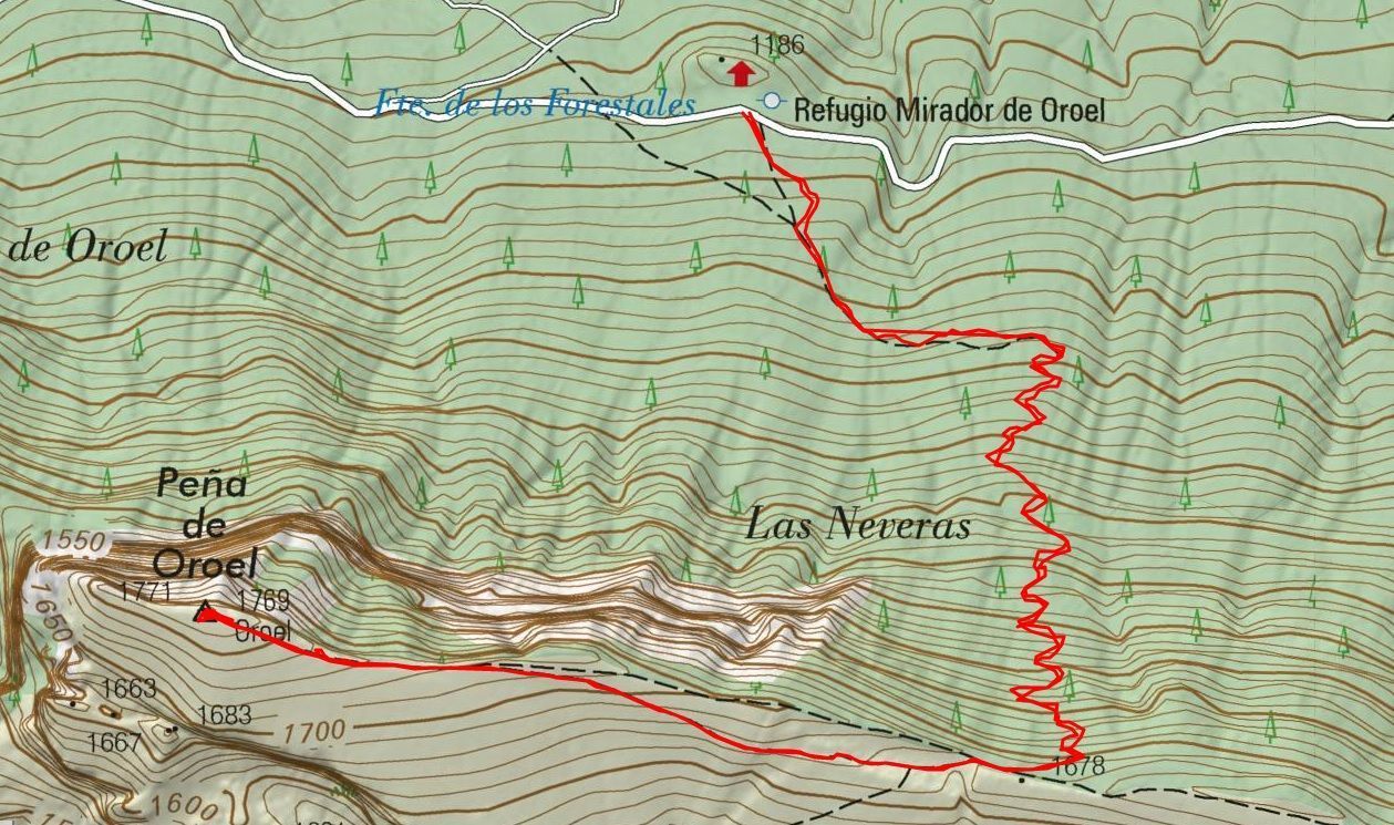 – La mayor parte del desnivel se supera en el tramo inicial, por bosque, realizando incontables lazadas para ganar altitud.