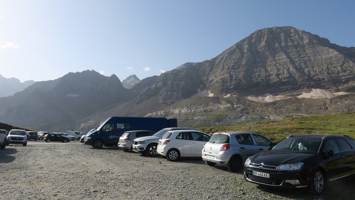 No madrugamos demasiado, por lo que cuando llegamos al Col de Tentes este se halla atestado de coches; debemos descender unos metros por la carretera para aparcar en un pequeño apartadero y remontar luego por la carretera hasta el gran aparcamiento, de donde parte la ruta.