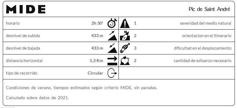 – 1 hora y 20 minutos hasta la cima del Pic de Saint André (30 minutos de descanso).