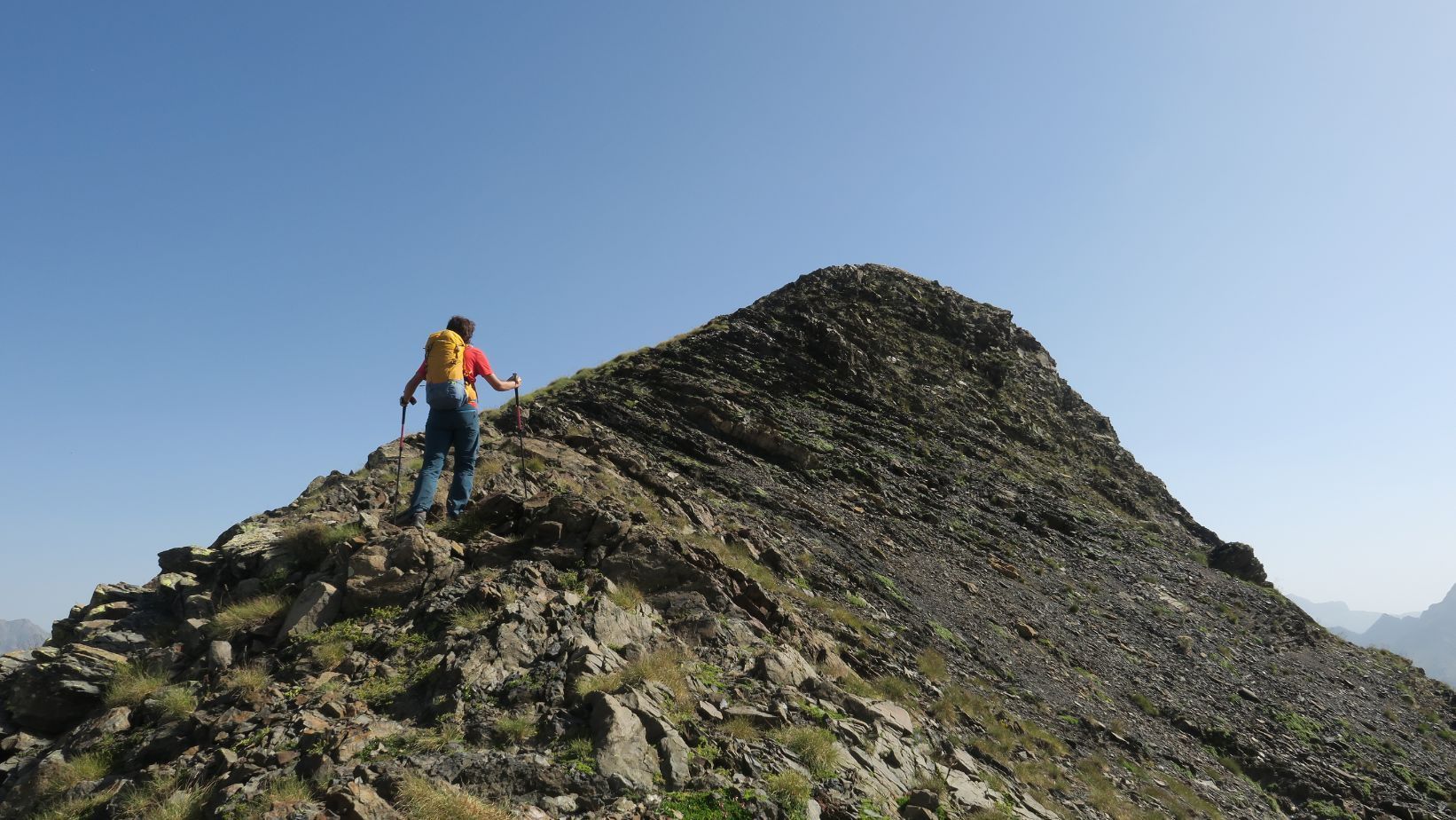 – Desde la cima se puede ir cresteando hasta el Soum Blanc des Espécières, ligeramente más elevado y cuyo tramo final requiere ayudarse ligeramente de las manos.