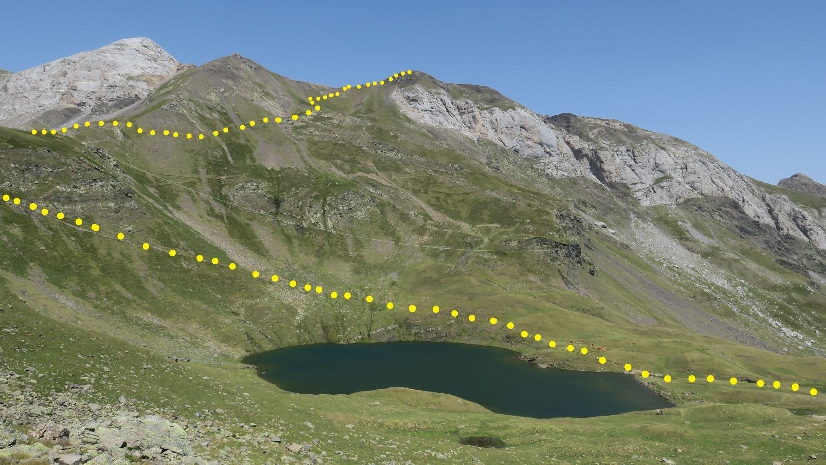 Ruta realizada, vista desde la parte sur del Lac des Espécières.