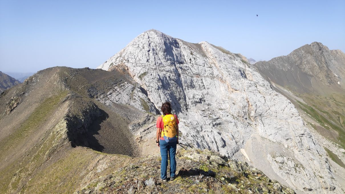 Pronto alcanzamos un pequeño collado que ya regala vistas de la otra vertiente de la montaña. Tan solo nos queda remontar unos pocos metros, por una cresta ancha y sin dificultad, para hollar la cima del Pic Saint André (2,75 km; 1 h 20 min; 2606 m).