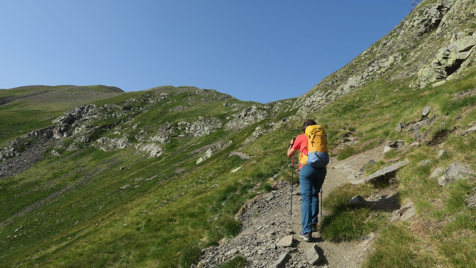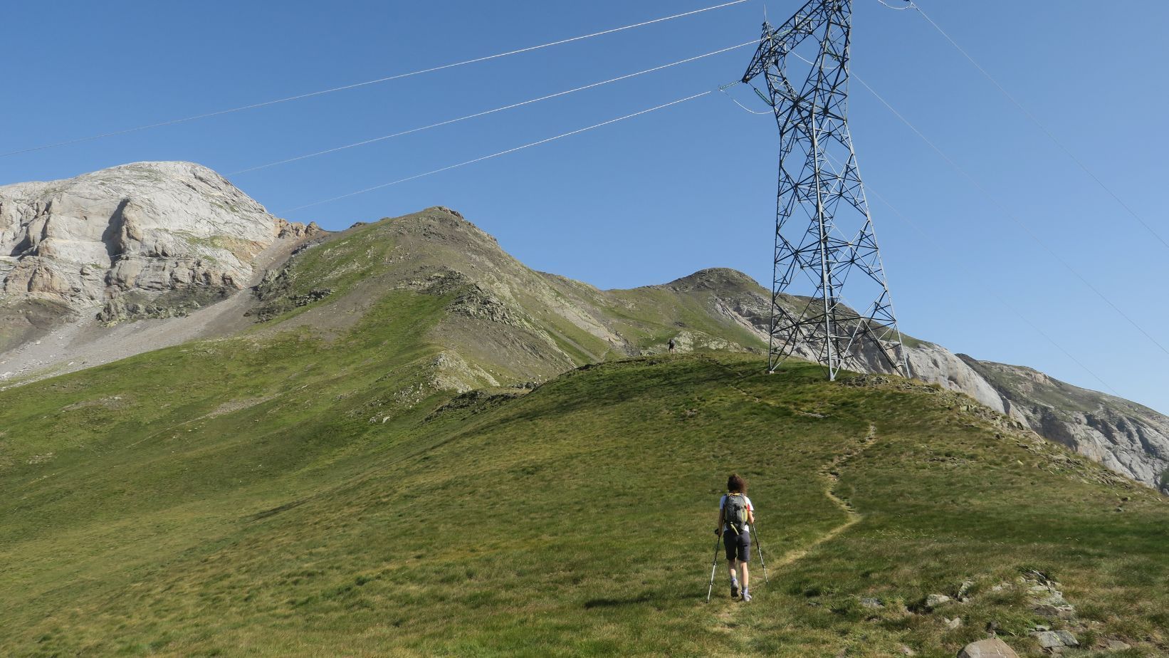 Ascendemos unos metros hasta superar la torre eléctrica y llegar a este primer collado.