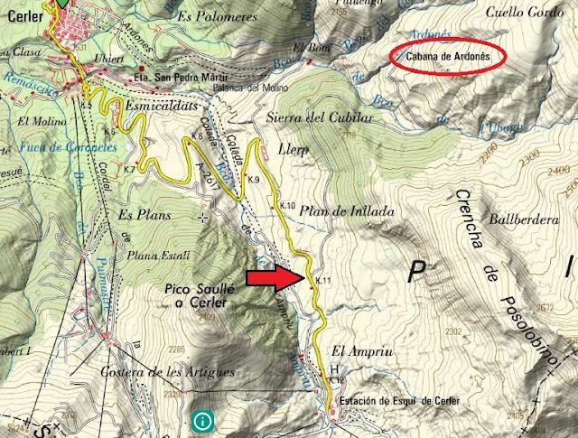 Inicio y fin de la ruta: Barranco de l’Ubago, poco antes de llegar a la Cabaña de Ardonés.