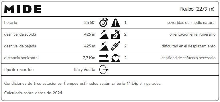 – 1 hora y 35 minutos hasta la cima del Picalbo (15 minutos de descanso).