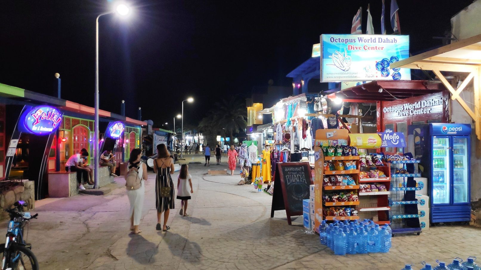 Tras la cena nos empapamos del buen ambiente de Dahab mientras paseamos por su calle más turística; cuando nos cansamos regresamos al hotel y nos vamos a dormir.
