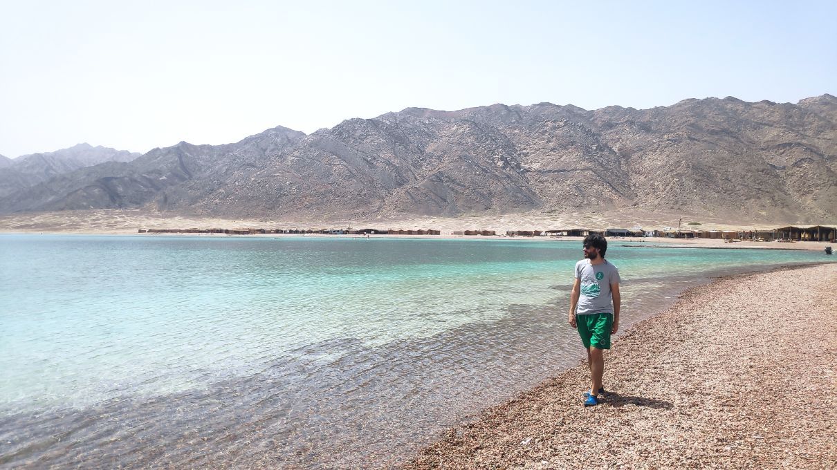 Desde la punta de la lengua de arena contemplamos el Mar Rojo en su totalidad, intuyendo al fondo también tierras de Arabia Saudí.