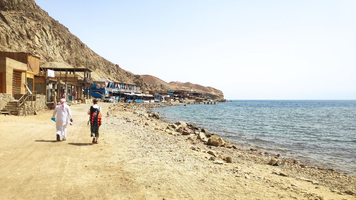 En la zona del Blue Hole hay numerosos bares y restaurantes, se nota que es un lugar bastante turístico aunque hoy no hay demasiada gente (la pandemia ha hecho descender el turismo, nos indican).
