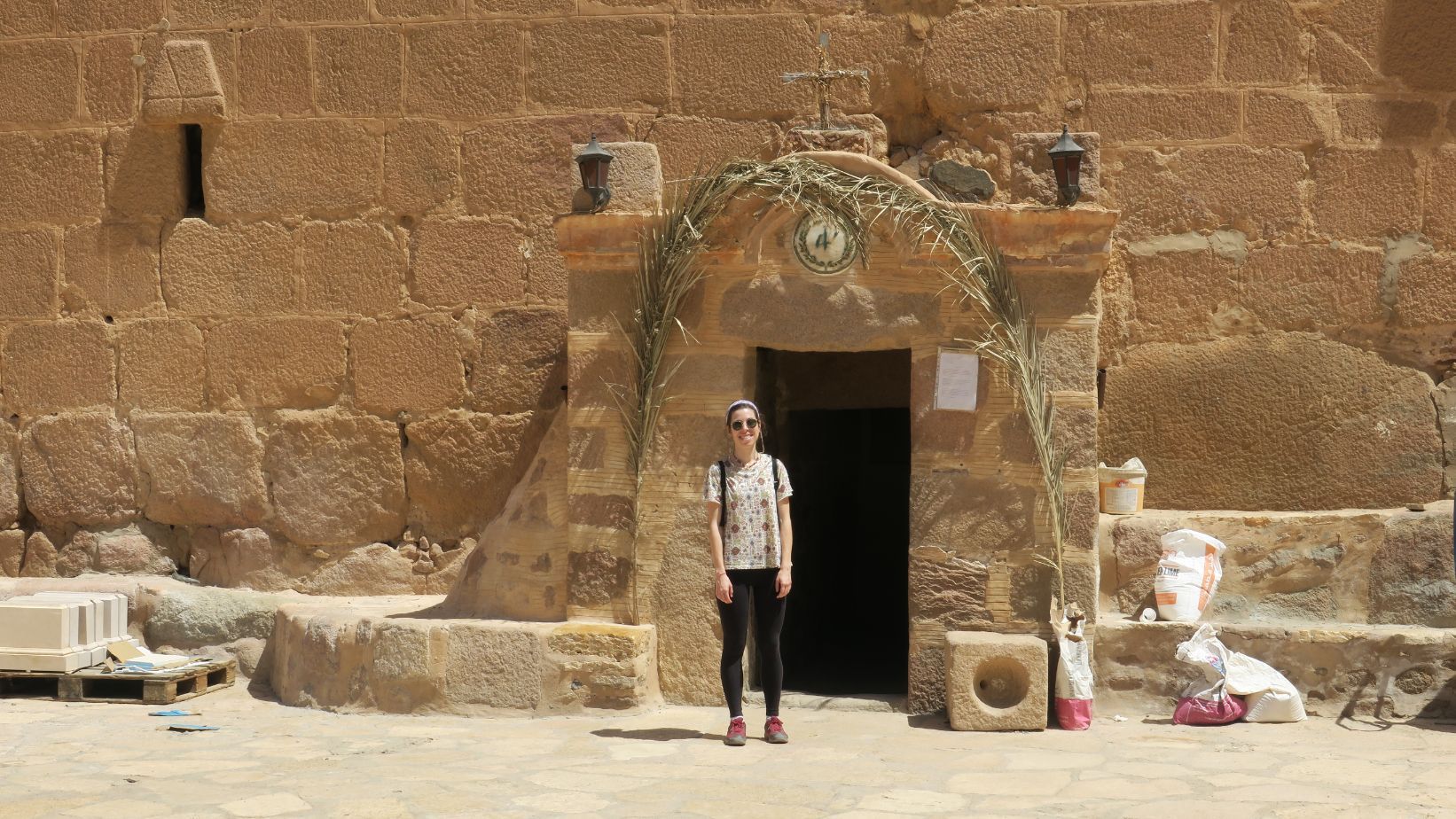 Llegamos a la entrada del Monasterio de Santa Catalina y allí conocemos a Ahmed, un amable beduino que será nuestro guía. Pasamos un estricto control de seguridad y caminamos unos cuantos metros hasta la entrada del monasterio, bajo un sol de justicia.