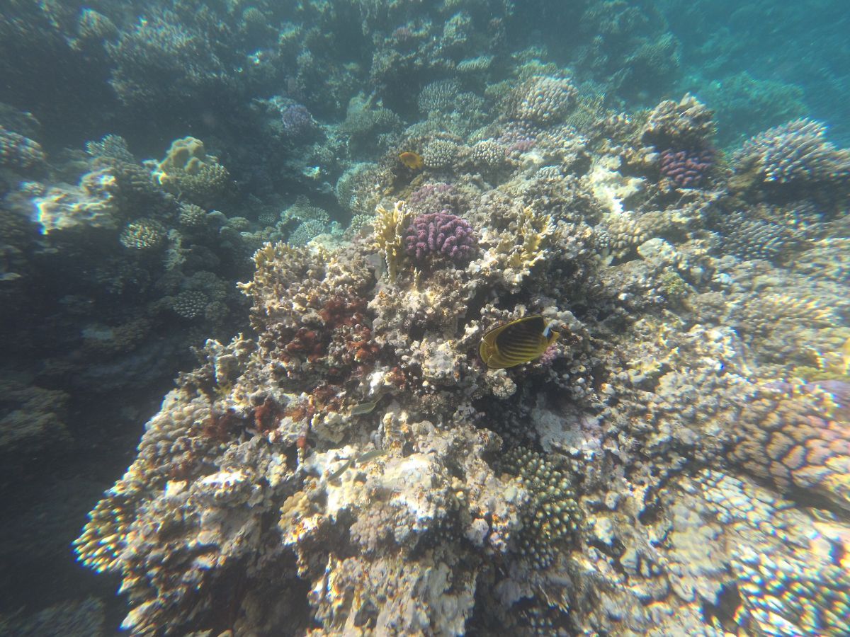 Regresamos en el jeep a la zona de Abu Gallum. Dejamos nuestras cosas en otro puestecillo a la sombra y salimos a hacer snorkel, recorriendo un pequeño tramo de arrecife menos espectacular que el visto anteriormente en el Blue Hole.