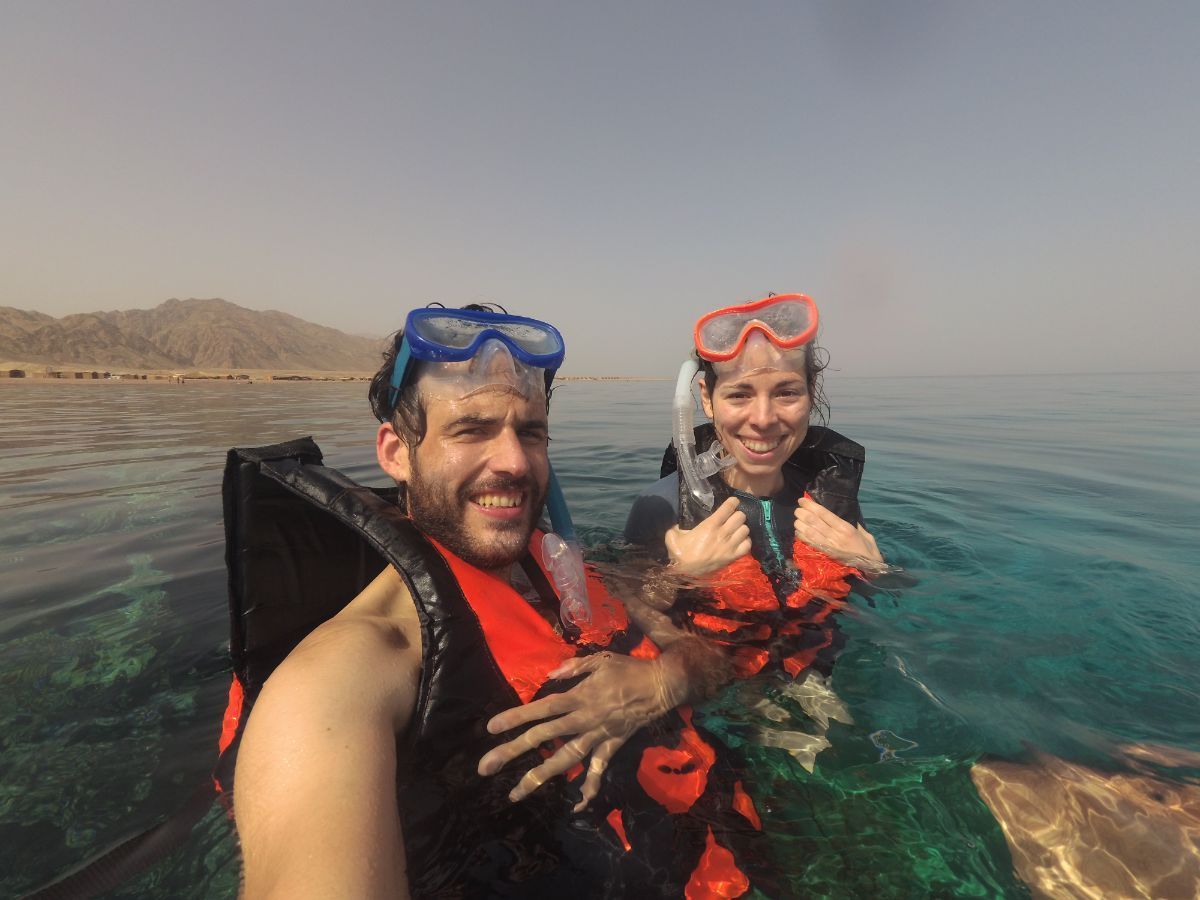 Hemos contratado un tour que nos lleve a los principales puntos de interés de la zona de Dahab, para poder hacer snorkel y bañarnos en alguna playa bonita.