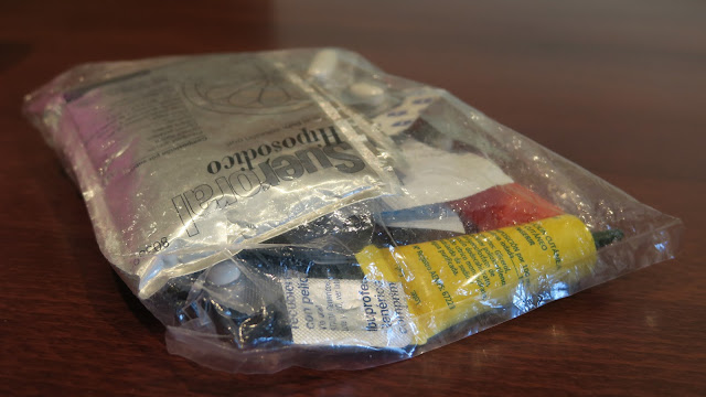 | Así luce una de las bolsitas que llevamos en nuestros viajes. Las cajitas, plegadas, van aparte. |
