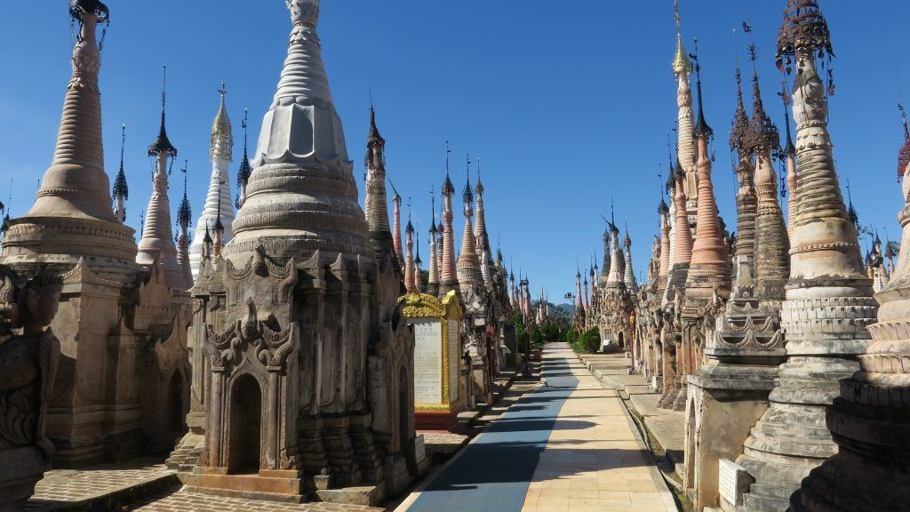 Inthein: quizá el lugar más evocador de la zona, merece la pena visitarlo con calma. Famoso por sus agrupaciones de antiguas pagodas, entre las que destacan Nyaung Oak (justo en la salida del pueblo) y Shwe Inn Thein Paya. Esta última, a la que se accede caminando por una larga escalera cubierta, contiene más de mil estupas de los siglos XVII y XVIII. Uno de los iconos del Lago Inle. La entrada a la pagoda es gratuita, aunque en ocasiones solicitan una pequeña tasa por tomar fotografías.
