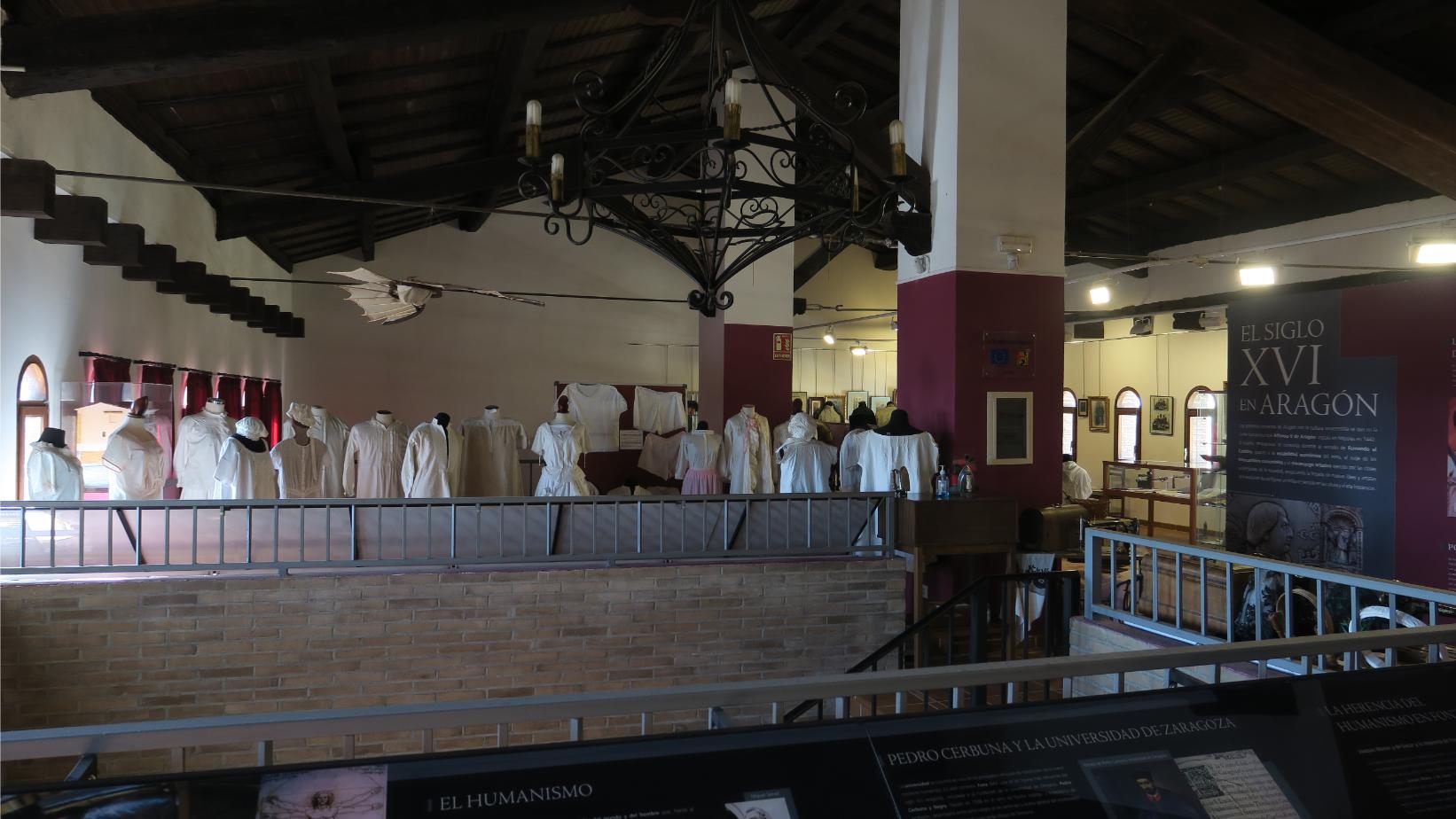 Antes de salir del Ayuntamiento, nos permiten acceder a la parte superior del mismo, en que se halla el Centro de Interpretación del Renacimiento. Unos interesantes paneles explicativos nos invitan a sumergirnos en pleno siglo XVI y descubrir la cultura, arquitectura y costumbres de la población en dicha época. Además, recorremos brevemente el resto de la gran sala, donde se encuentran una gran cantidad de ropas y utensilios de la vida cotidiana en Fonz en épocas pasadas. Bastante interesante, sin duda.