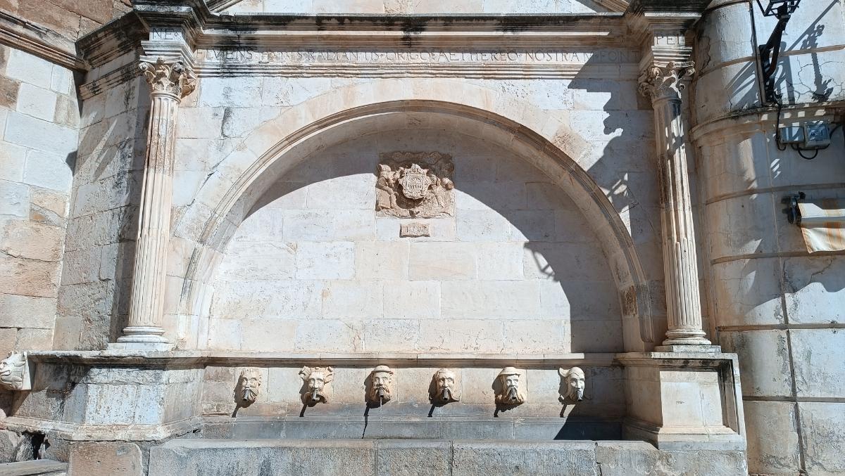 Fuente: situada en un extremo de la plaza, fue construida en el año 1567, y consta de seis fuentes constituidas por cabezas masculinas.