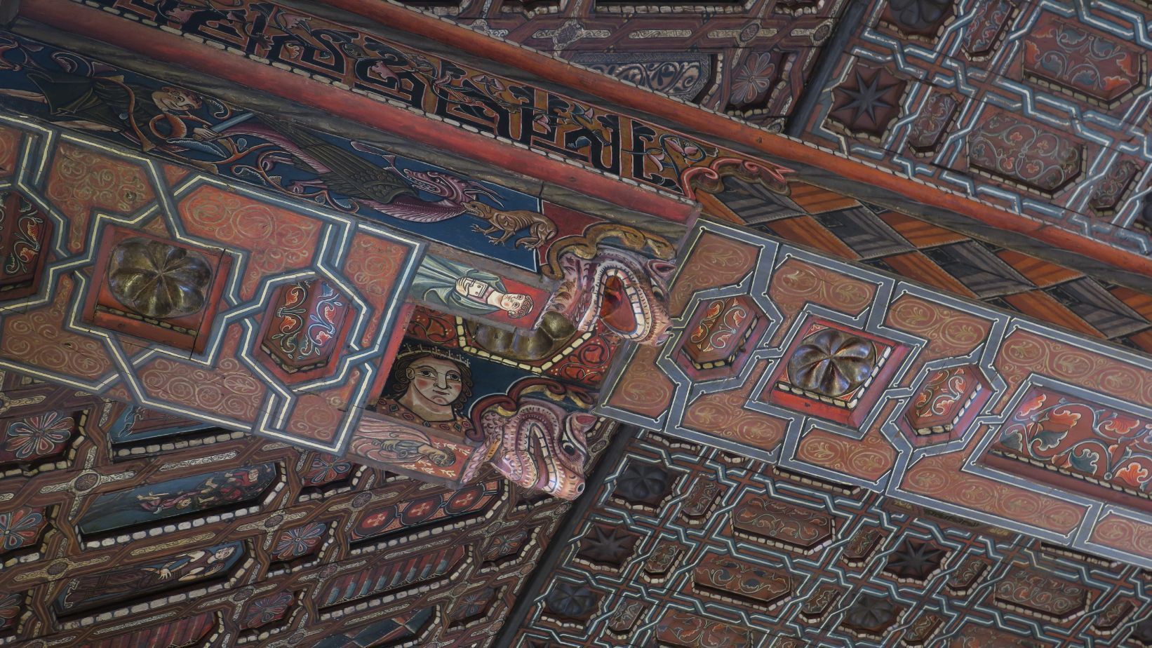 La entrada incluye una visita guiada (interesante), en la que nos explican los detalles de su Retablo Mayor (precioso, en madera) y, sobre todo, de la magnífica techumbre, que nos deja boquiabiertos.