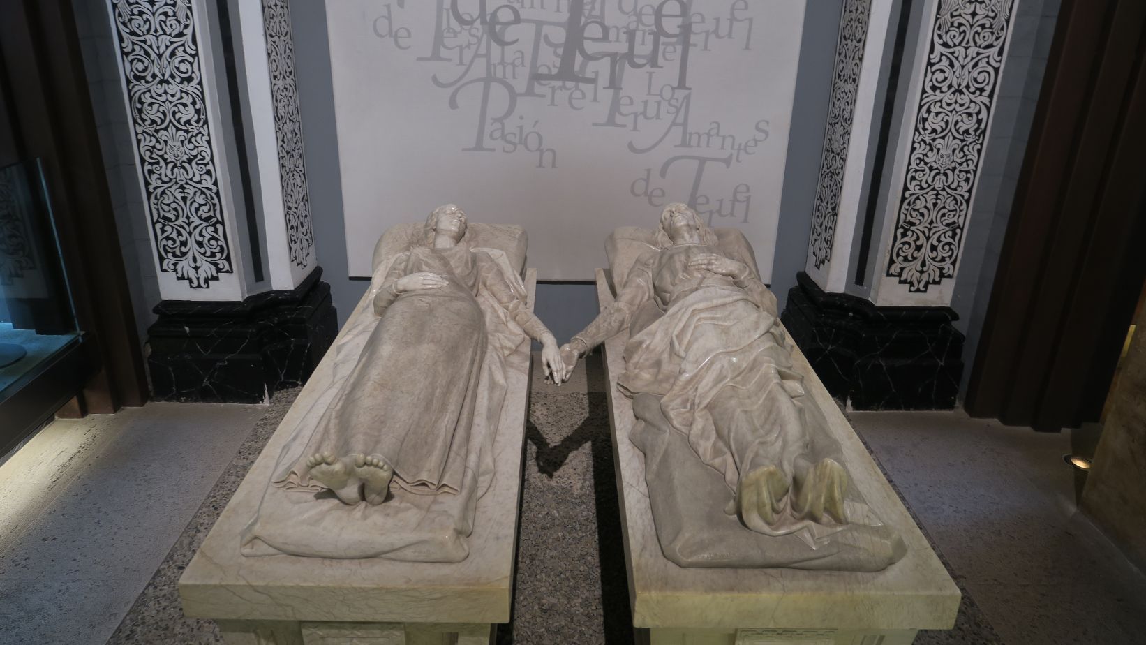 Seguimos la visita por Teruel, dirigiéndonos a uno de sus puntos más relevantes: el Mausoleo de los Amantes de Teruel. Foto de rigor con la escultura de la entrada de la puerta y accedemos al interior.