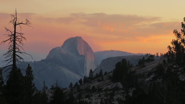 Entrando en el Parque Nacional de Yosemite, con las últimas luces del día.