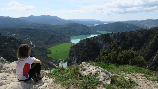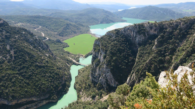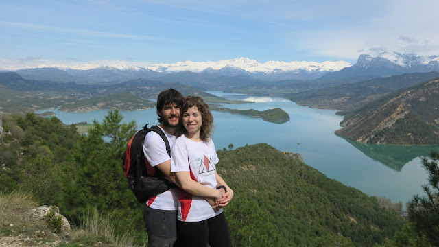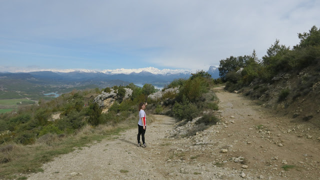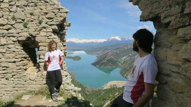 Las vistas desde el castillo son, tal y como esperábamos, impresionantes. A nuestros pies se encuentra el estrecho del Entremón, por donde el río Cinca serpentea encajonado entre el embalse de Mediano y el de El Grado. Hacia el norte, incontables cumbres pirenaicas, cargadas de nieve, delimitan un horizonte casi perfecto. Entre ellas reconocemos Cotiella, Peña Montañesa, Monte Perdido… Una panorámica que queda grabada en la retina de todo aquel que se acerque por estos lares.