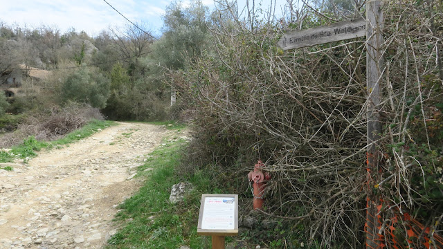 Aquí finaliza la pista, junto al cartel informativo. Nos quedan unos pocos metros por senda ascendente.