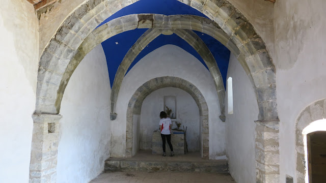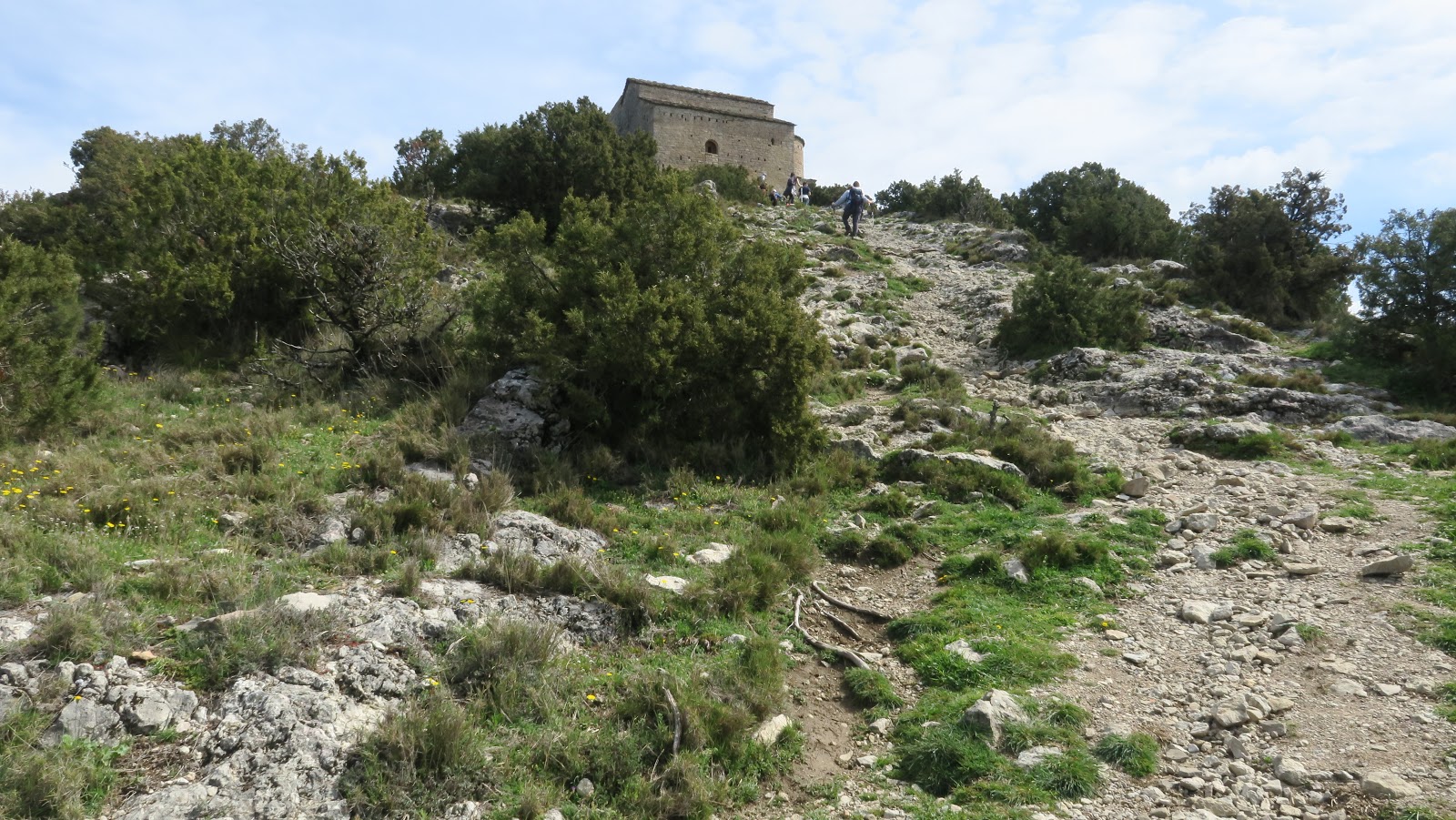 Cuando llevamos media hora de ascenso llegamos a la Ermita de Nuestra Señora de Waldesca. Dado que hay otros senderistas viéndola en este momento, decidimos posponer nuestra visita para el descenso.