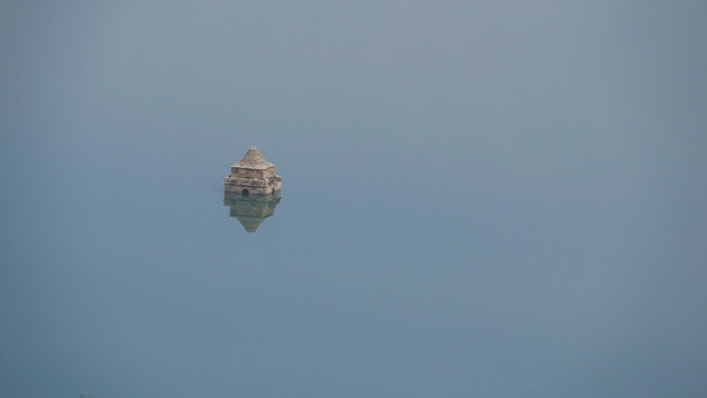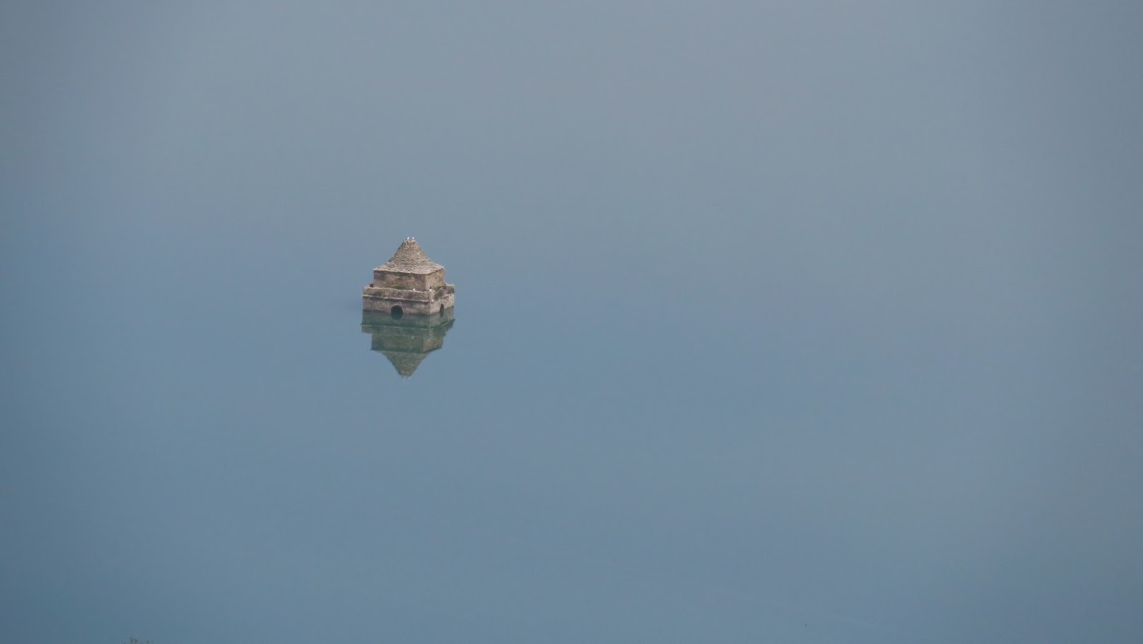 Sumergida torre de la iglesia del pueblo de Mediano, la «Dama del Lago».
