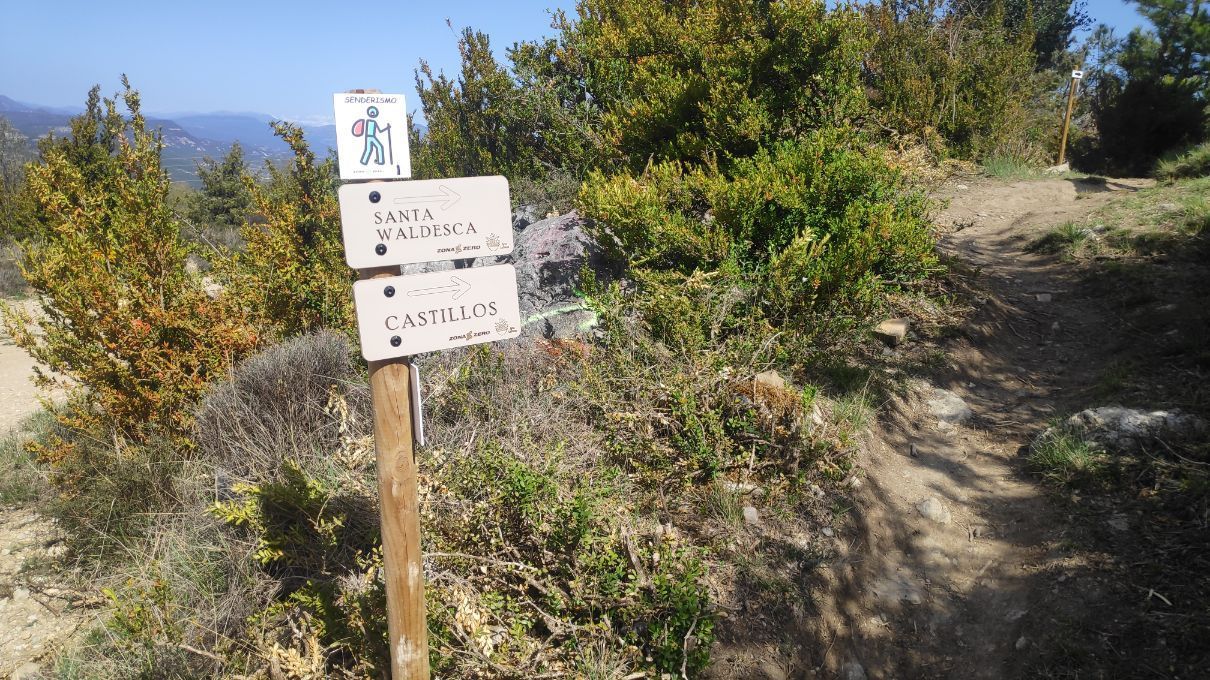 En el momento actual existe la posibilidad de ascender/descender por un sendero, habilitado por Zona Zero, que surca la montaña de manera más directa que la cómoda pista que recoge esta entrada del blog. Está bien indicado, transcurre parcialmente a la sombra y permite ahorrar tiempo tanto a la subida como a la bajada. No obstante, tiene algunos tramos con más pendiente que la pista, por lo que quienes no estén habituados a las caminatas por la montaña quizá prefieran la comodidad de la pista.