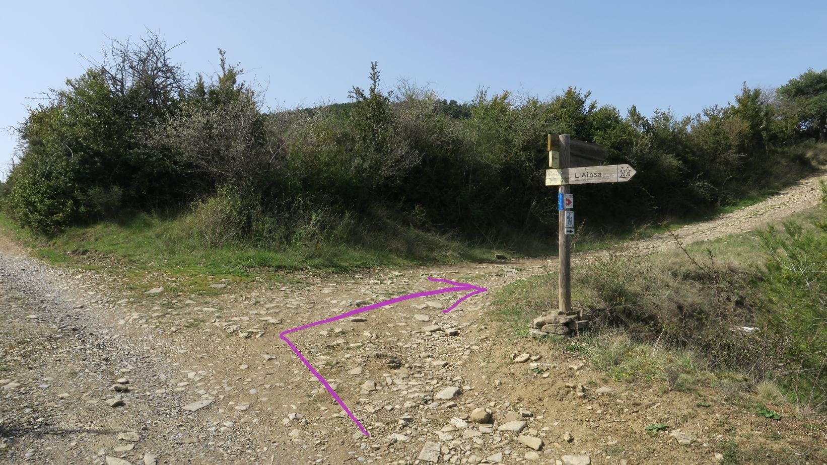 Continuamos, por tanto, rumbo oeste sin apenas ganar ni perder altitud, encontrándonos pronto con un nuevo desvío, en el que continuamos las indicaciones “Selva norte – Peñas Cinglas – Río Ena” para, un poco más adelante, llegar al paraje conocido como Osqueta d’a Calura.