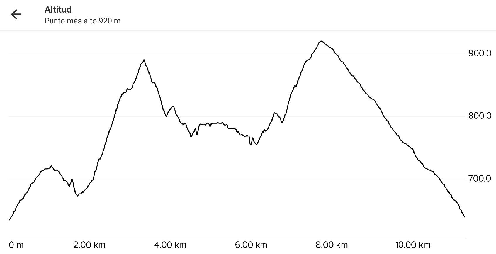 Desnivel acumulado: 579 metros, tanto de desnivel positivo como negativo.