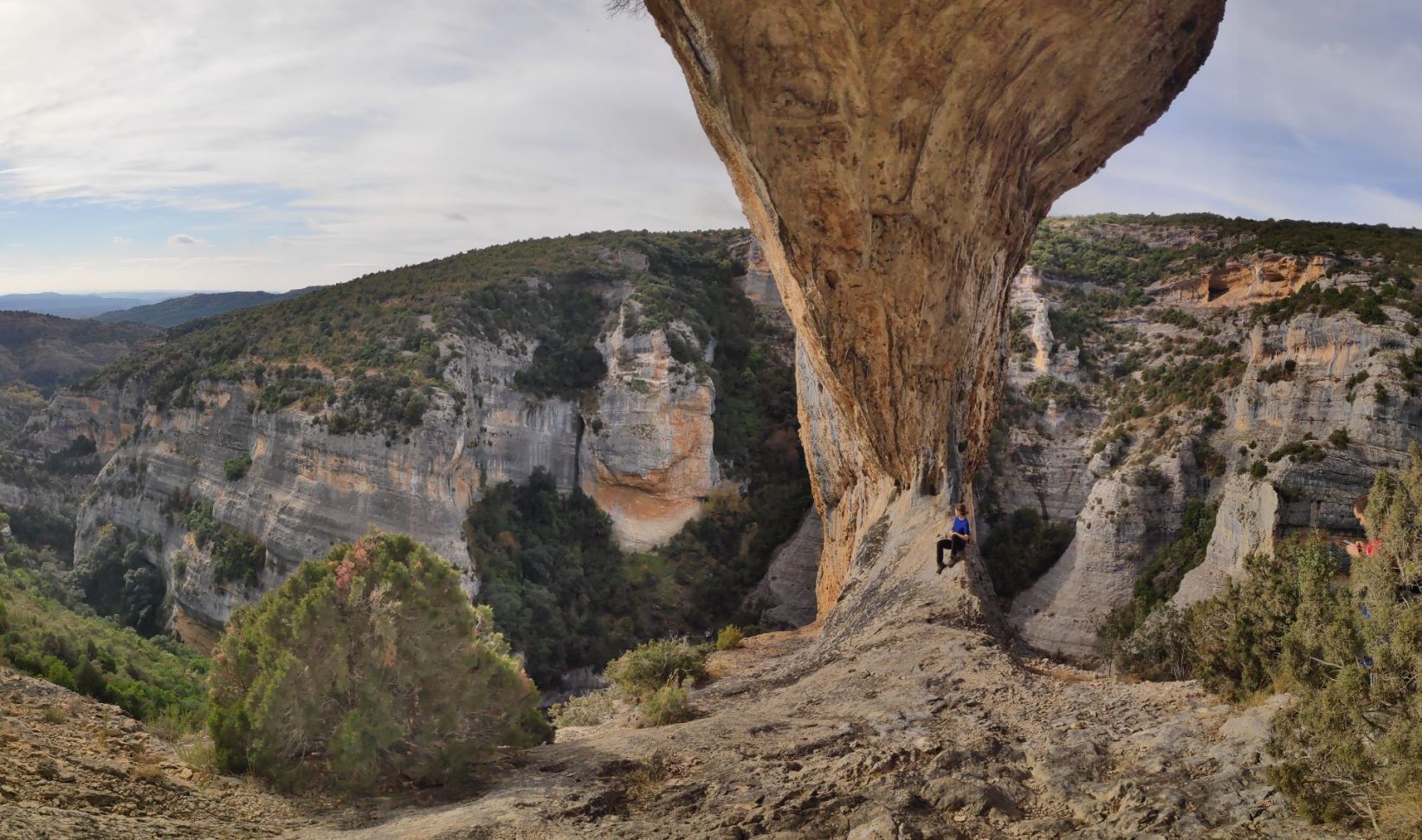 Impresionante lugar. El agujero natural en la roca tiene unas dimensiones colosales, difícilmente imaginables al contemplarlo de lejos. En su interior nos sentimos diminutos, sentados junto al grandioso pilar de roca que sujeta toda la estructura. A nuestro alrededor revolotean los buitres y otras aves, quienes encuentran en los cañones de la zona unos excelentes refugios. Las verticales paredes del Barranco del Fornocal completan la exquisita estampa.