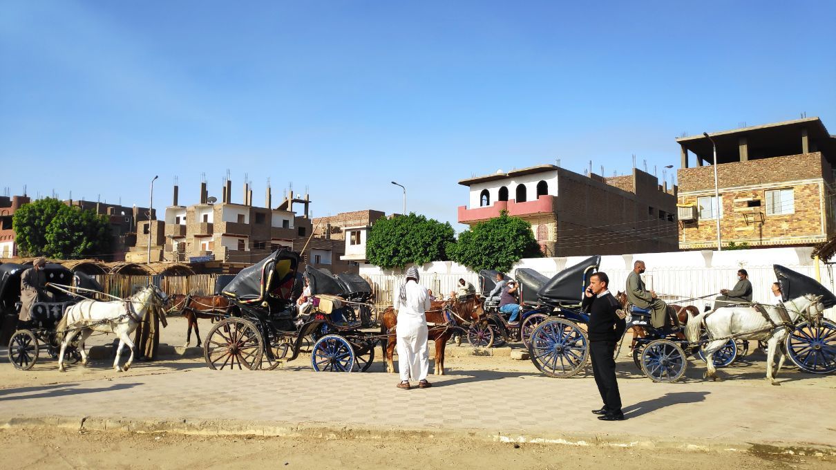 – Coche con guía: una opción más que recomendable, cómoda y, en muchos casos, inevitable. Si bien el precio es elevado (ya que incluye los honorarios del guía), permite ir de manera rápida a todos los destinos que, por otro lado, en ocasiones serían difíciles/imposibles de visitar en transporte público. En nuestro caso visitamos los alrededores de Luxor (Medinat Habu, Valle de los artesanos, Valle de las Reinas), los templos de Abydos y Dendera y, por otro lado, Menfis, Dahshur y Saqqara de este modo.