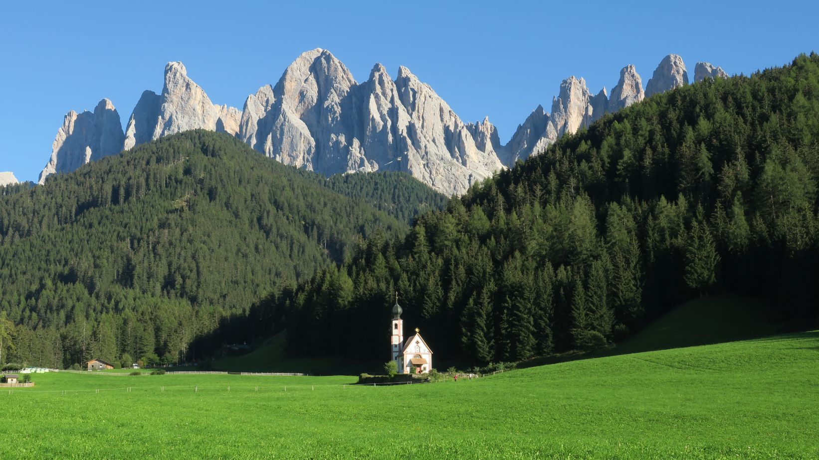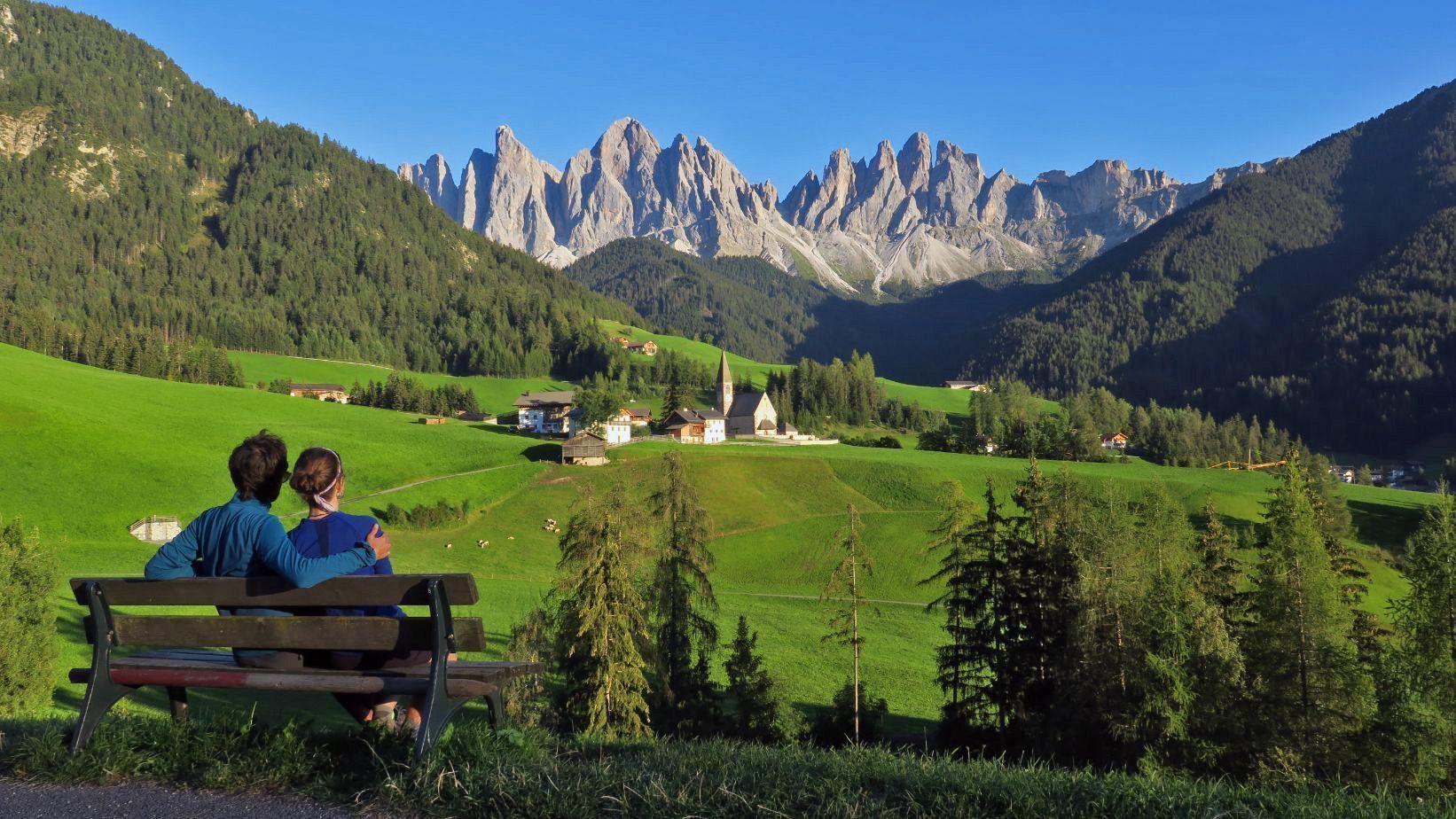 – Día 4: tomamos el teleférico que nos lleva a Alpe di Siusi, donde realizamos dos rutas senderistas. La primera es el Giro del Bullacia; la segunda es una ruta circular que pasa por el Hotel Panorama, ambas con extraordinarias panorámicas. Regresamos en el teleférico y nos acercamos, ya en coche, a la cercana localidad de Siusi Seis para visitar la coqueta Iglesia de San Valentino, enmarcada en una zona de prados y con impresionantes montañas de fondo. Continuamos la ruta en coche hacia el Val di Funes, donde es imprescindible acercarse a la Iglesia de San Giovanni in Ranui y a la de Santa Magdalena, esta última preciosa con las luces del atardecer.