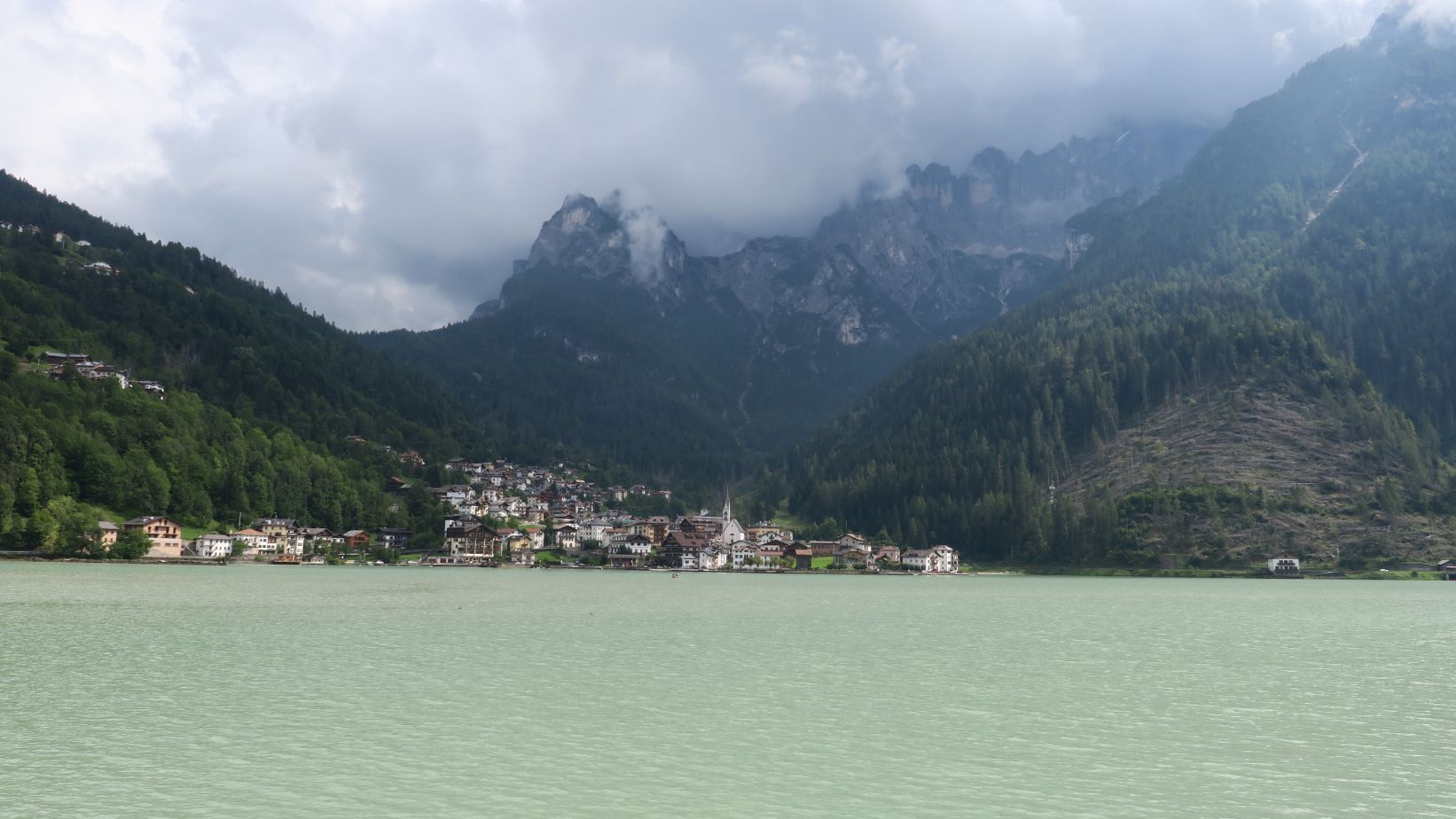 – Día 7: toca decir adiós a las altas montañas; nos dirigimos a la bonita localidad de Alleghe, parando antes en la coqueta Colle Santa Lucia. Día más tranquilo, en el que damos un paseo alrededor del lago de Alleghe, finalizando bajo la lluvia.