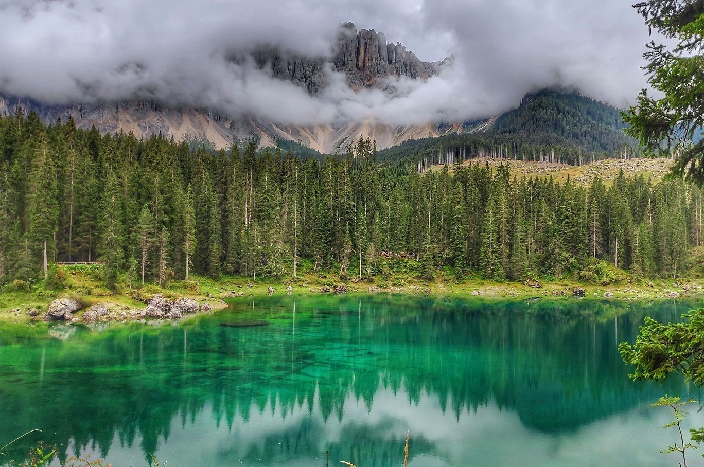 – Lago di Carezza: situado junto a la carretera, este lago de aguas azul verdoso se encuentra situado bajo un hermoso bosque y afiladas cumbres. Quizá sea una de las estampas más famosas y fotografiadas de los Dolomitas; lo cierto es que motivos no le faltan. Se puede realizar una ruta circular, rodeándolo, que lleva aproximadamente media hora.
