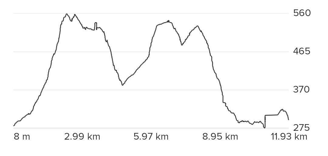 Desnivel acumulado: 593 metros, tanto de desnivel positivo como negativo.