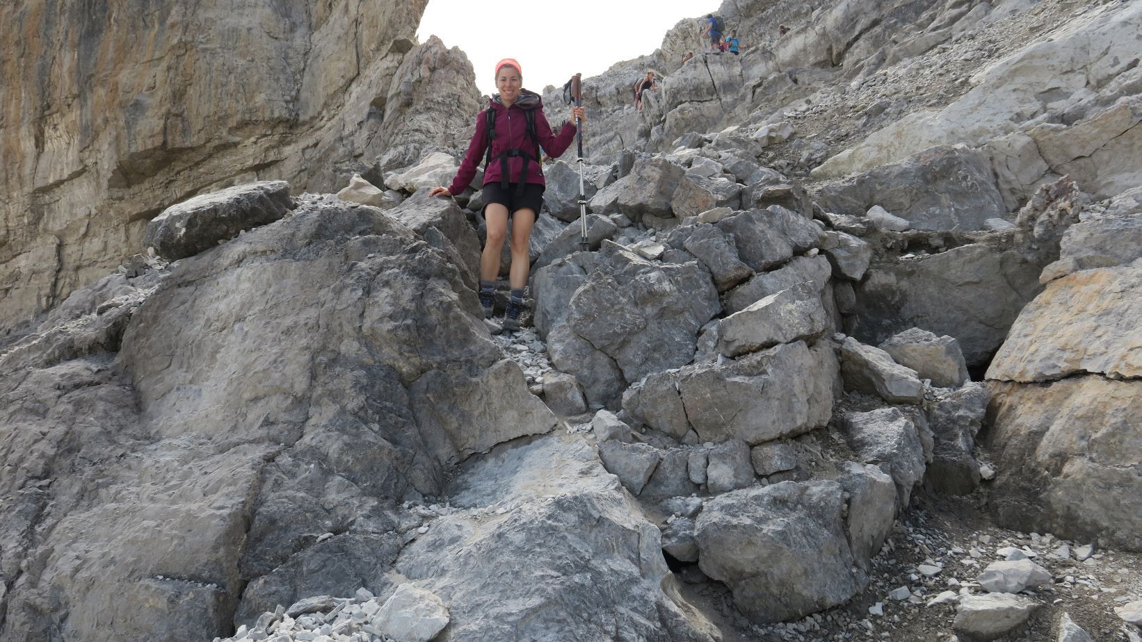 Superado el tramo duro llegamos a una pequeña planicie rocosa, punto ideal para descansar unos minutos, beber algo de agua y, por supuesto, tomar fotografías de la impresionante Brecha de Rolando, que ya casi podemos alcanzar con nuestras manos.