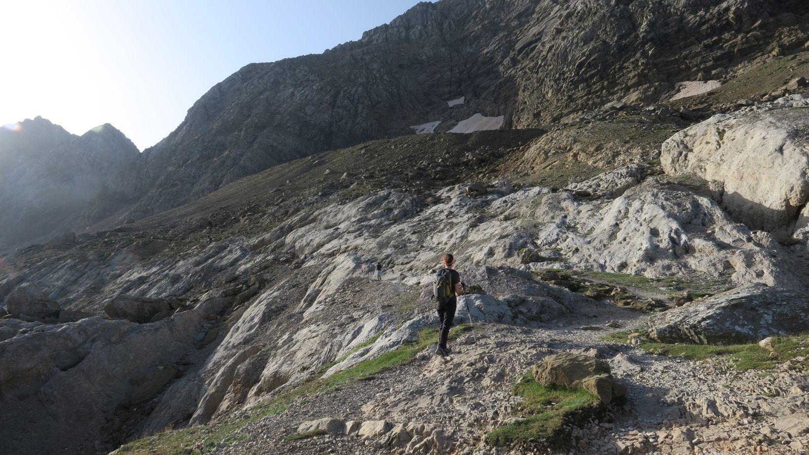 Seguimos las indicaciones de dicho desvío y comenzamos un suave ascenso por, ahora sí, un sendero de montaña, bajo las imponentes paredes que descienden de los Gabietos y con vistas de la siempre fascinante cara norte del Taillon. ¡Y pensar que dentro de unas pocas horas estaremos ahí arriba…!