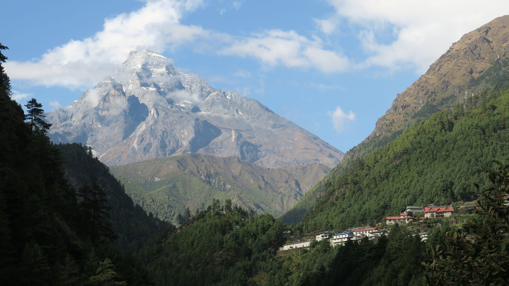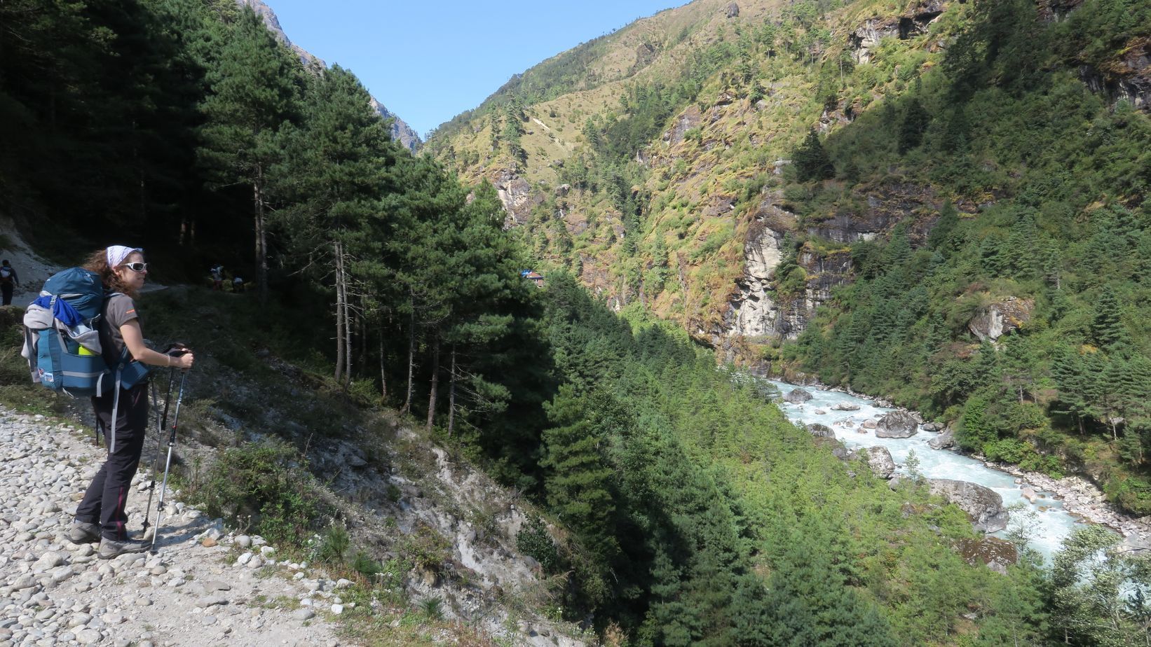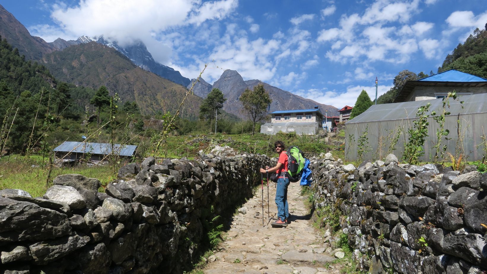 Llevamos poco más de tres horas de caminata cuando llegamos a la localidad de Phakding. Aquí son muchos los que dan por finalizada la primera etapa, puesto que se trata de una población relativamente grande. Nosotros, sin embargo, preferimos detenernos a comer y descansar un buen rato en una agradable terraza, y luego continuar para alargar un poco esta primera jornada y que la segunda, de claro ascenso, resulte más cómoda.