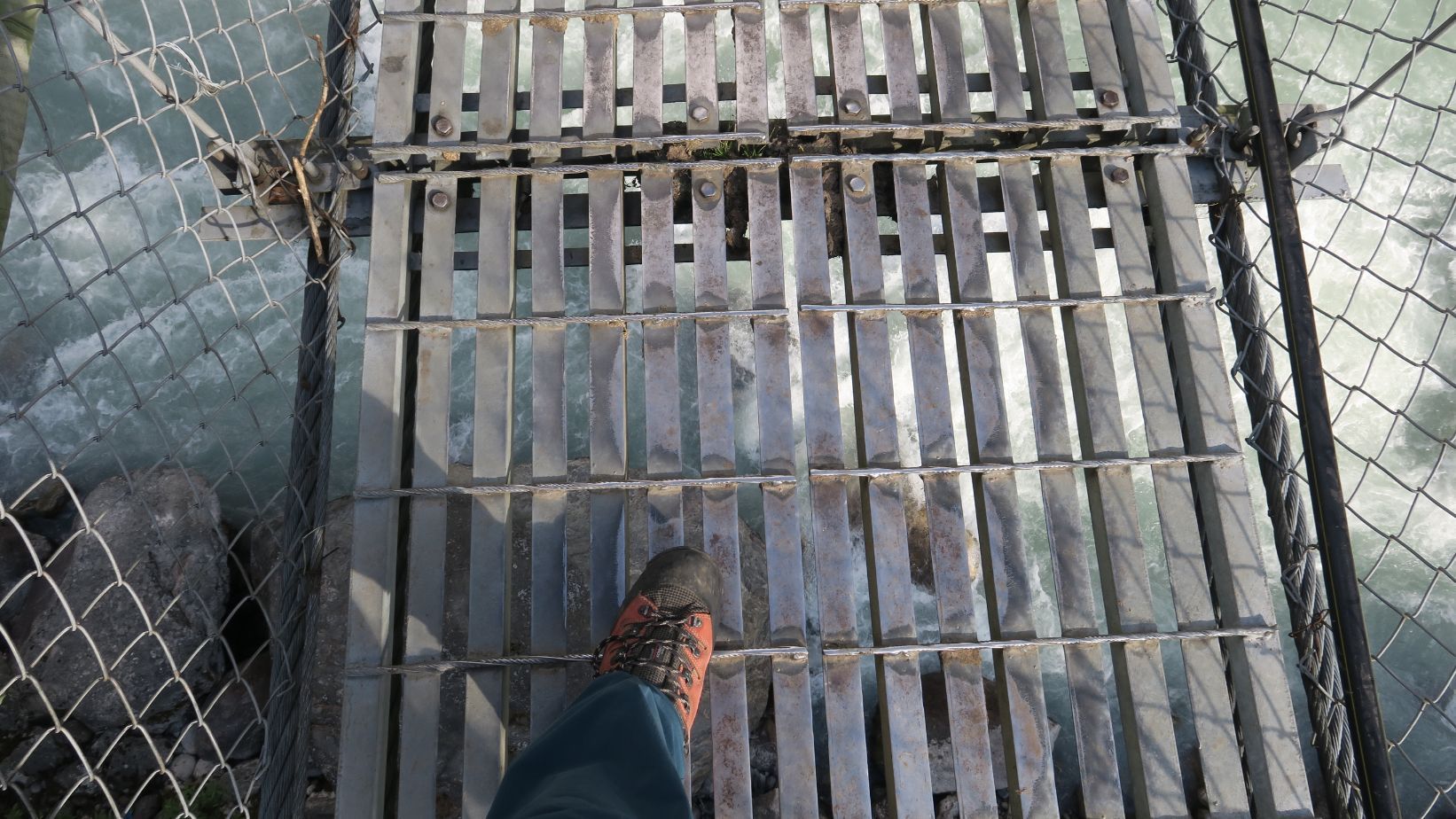 Pero antes, debemos cruzar el primero de los múltiples puentes tibetanos que encontraremos en el camino. Tras esperar unos segundos que un rebaño de burros lo cruce, nos dirigimos al puente metálico, el cual nos genera inicialmente una ligera sensación de vértigo. Tranquiliza, eso sí, comprobar que está en muy buen estado y transmite sensación de seguridad.