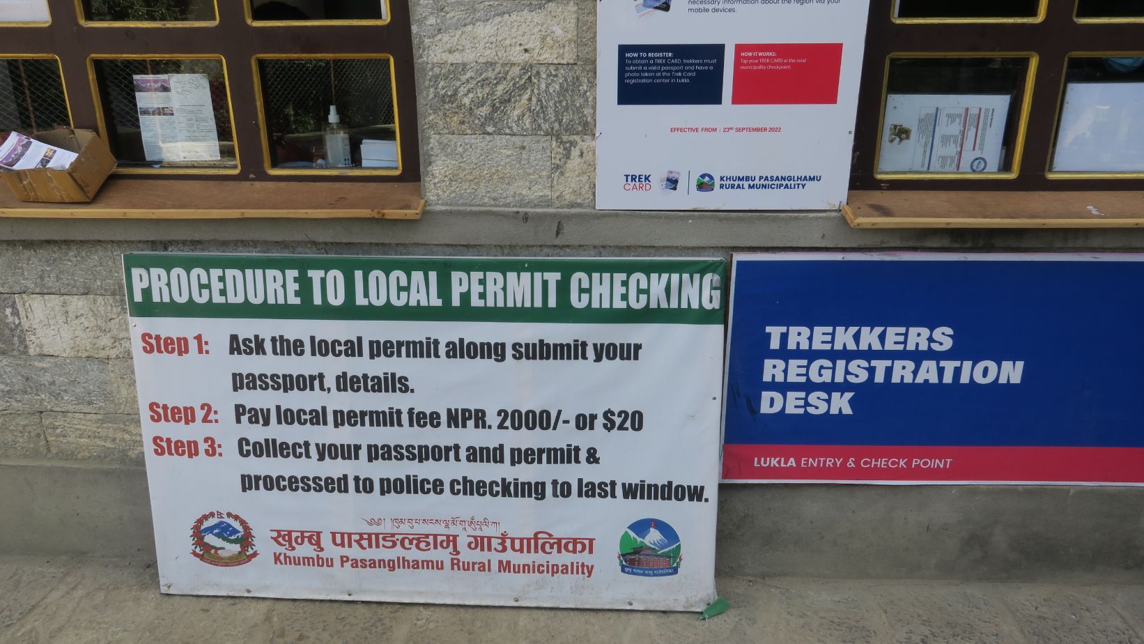 – Necesario parar, a la salida de Lukla, para obtener el permiso del trekking (2000 rp/16€ por persona). Allí dan también la Trekkers Card. Contar con unos 10-15 minutos para el trámite.