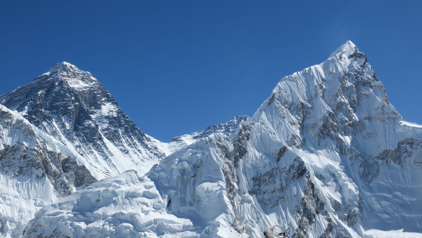 De izquierda a derecha: Everest, Lhotse (casi inapreciable, al fondo) y Nuptse.