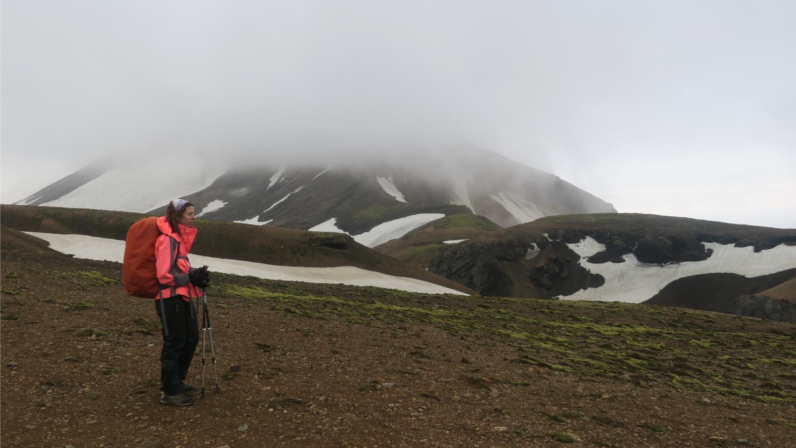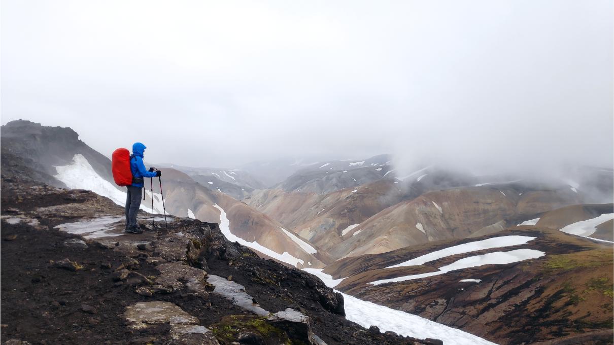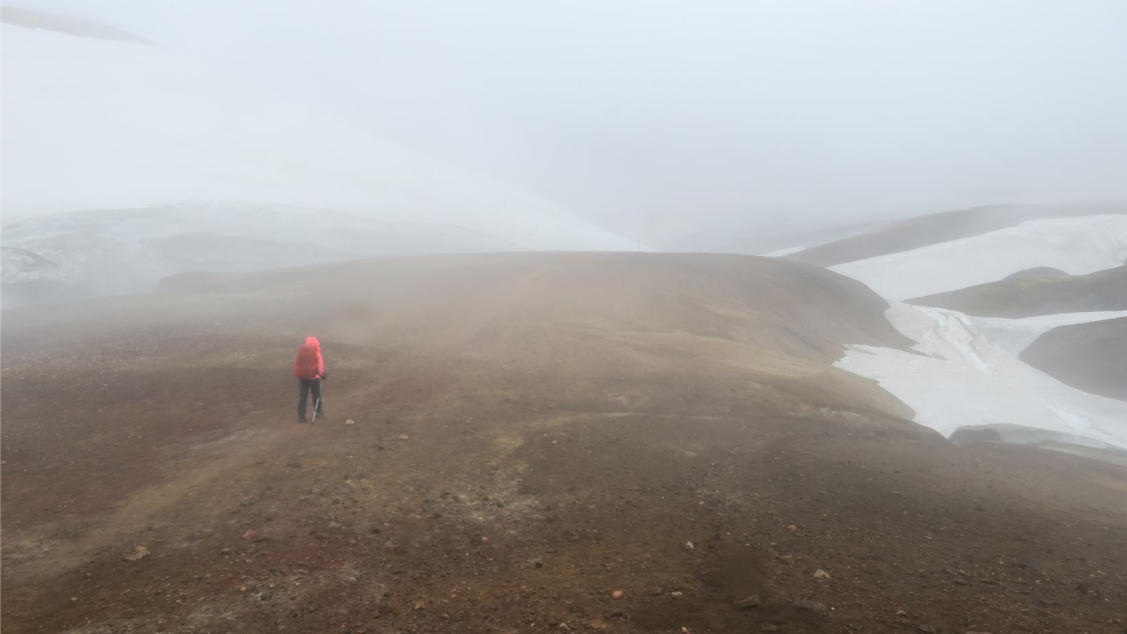 Segunda etapa del trekking, recorriendo las zonas a más altitud del mismo. Terrenos nevados, niebla y ligera lluvia durante un rato hicieron que esta etapa fuera la más dura de nuestra aventura en el Laugavegur.