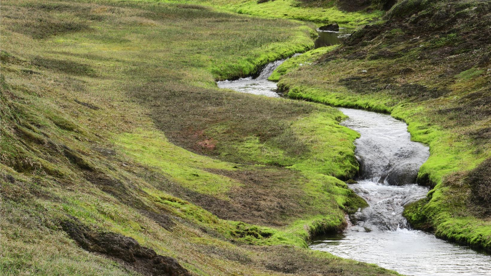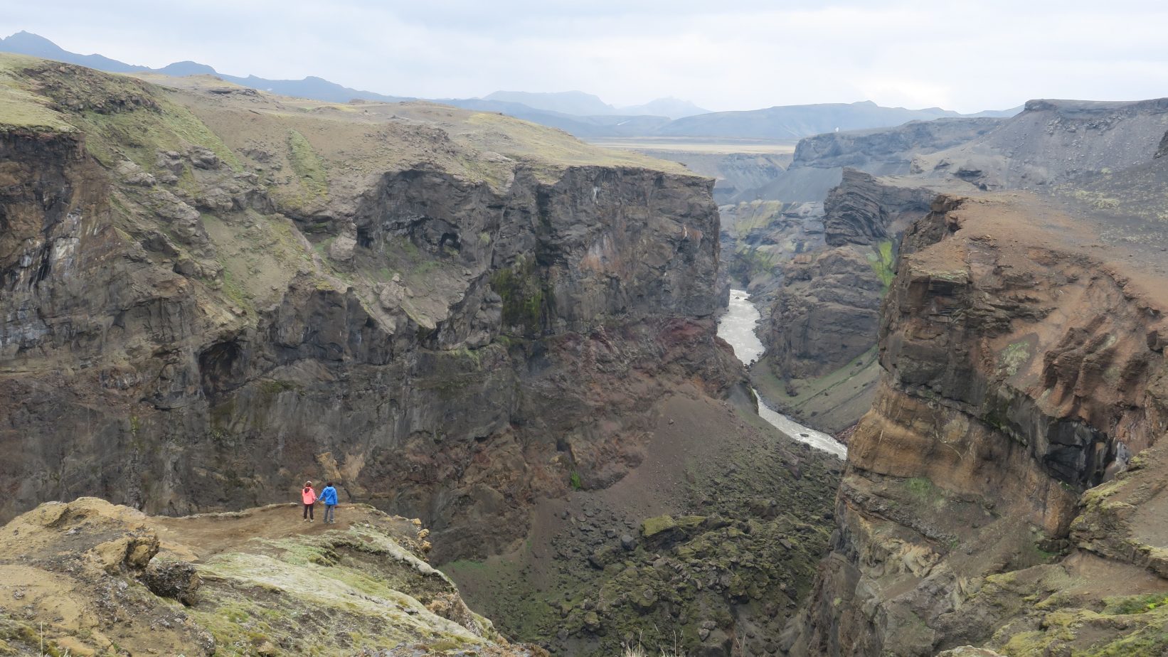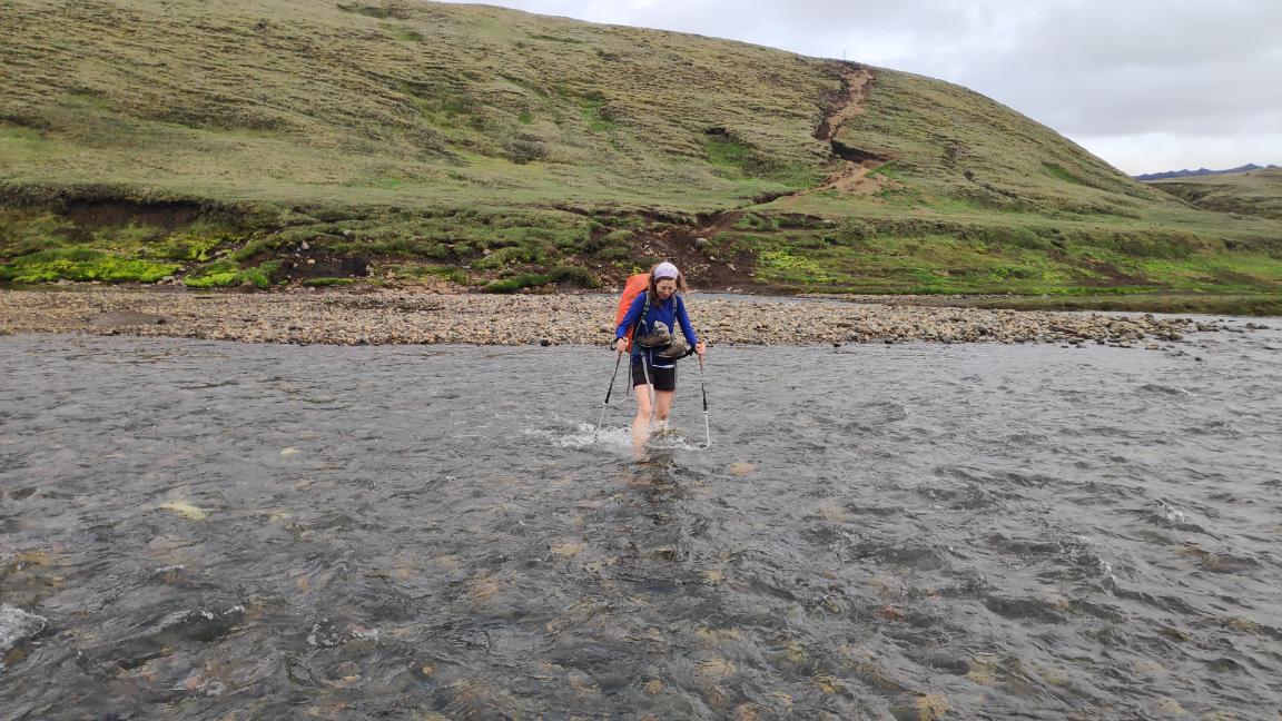 Este paisaje más pesado y repetitivo se ve truncado por el potente Río Innri-Emstruá (9,23km; 3 horas y 30 minutos; 544 metros). Probablemente el más caudaloso de todo el trekking, ruidoso y espectacular. Con el paso del tiempo ha labrado un pequeño cañón de varios metros de profundidad, el cual atravesamos por un gran puente.