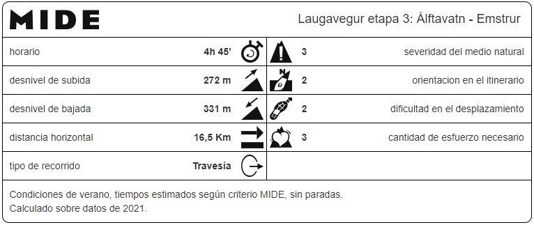 Remontamos un nuevo repecho a la vez que la senda vira hacia el sur, dejándonos ver a lo lejos el Refugio de Emstrur (16,48 km; 5 horas y 33 minutos; 487 metros), el cual alcanzamos tras un descenso más pronunciado.