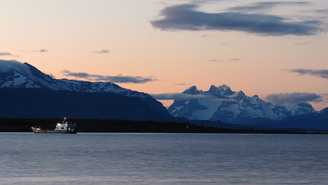 Vistas desde Puerto Natales, con las luces del atardecer.