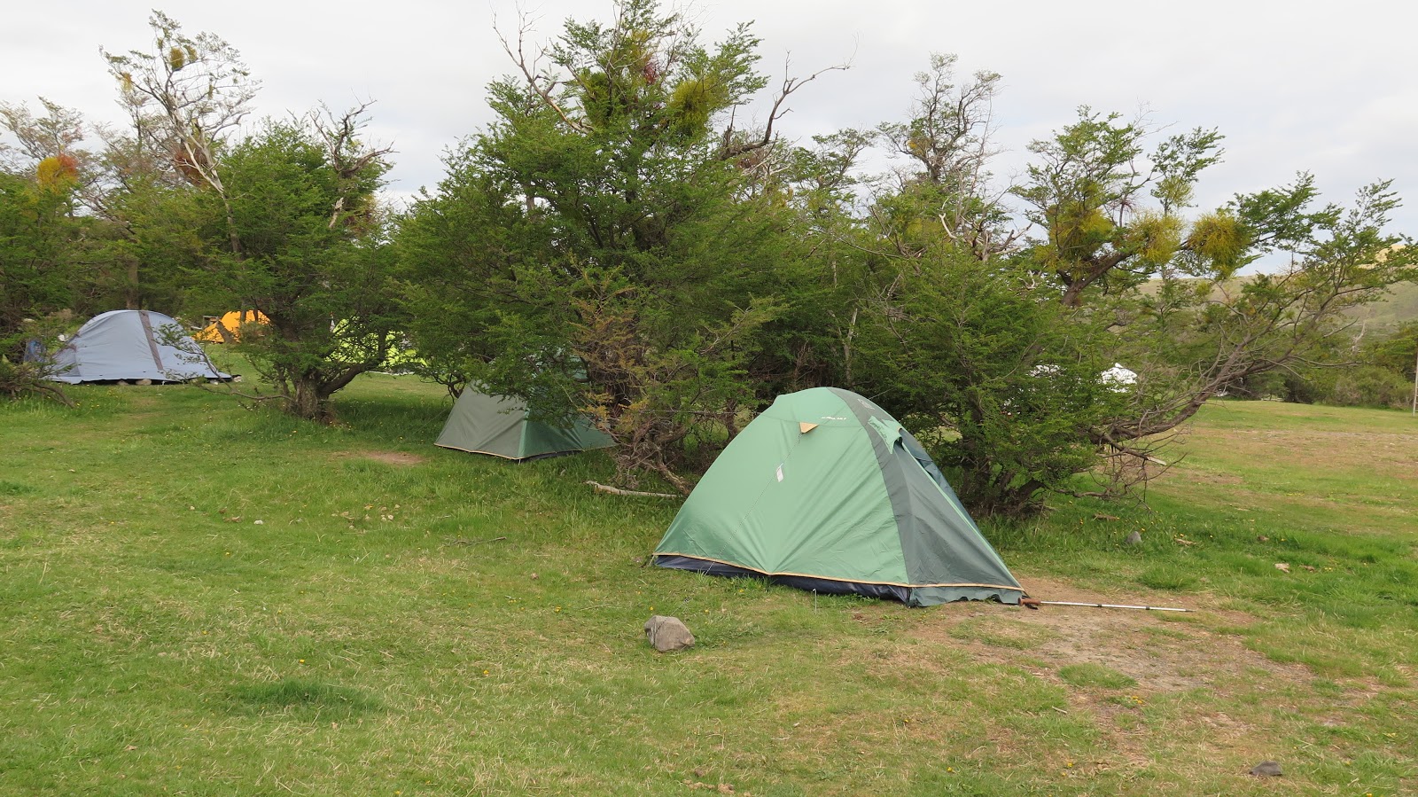 Nosotros hemos reservado en el camping, donde ya se encuentran preparadas las tiendas en las que vamos a dormir. Son más que decentes para dormir dos personas en cada una. Próxima a las tiendas existe una pequeña garita donde adquirir, a precio de oro, comida y bebida. También tenemos, a unos 50 metros, un pequeño edificio con baños, duchas y agua potable. No existe, sin embargo, un edificio común donde poder cocinar si llueve o hace mal día (el refugio está bastante alejado de la zona de acampada, como a 10-15 minutos andando).