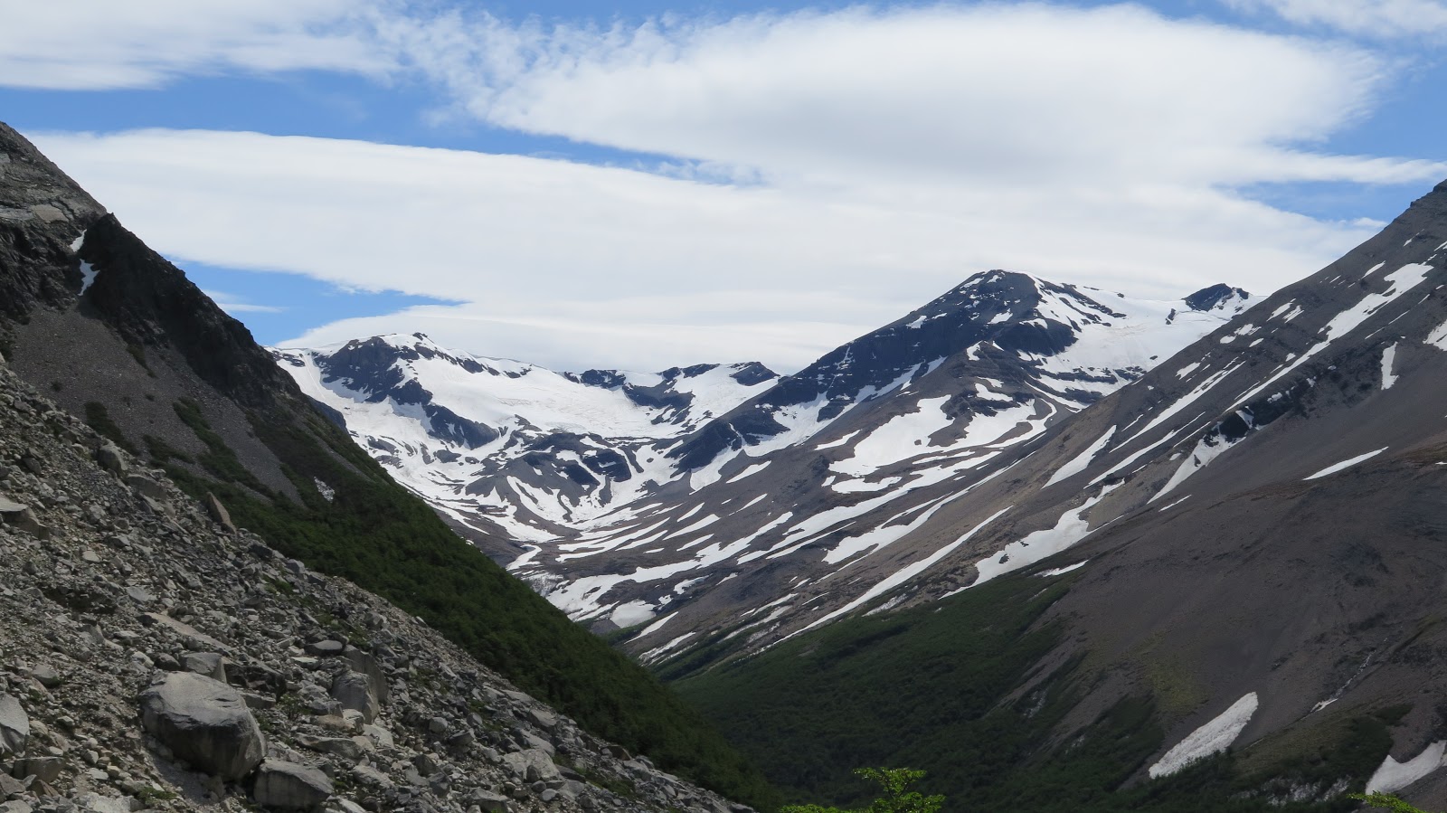 | Llaneamos o, incluso, descendemos un poco por el valle. En el comienzo de la zona boscosa se encuentra el Campamento chileno. |