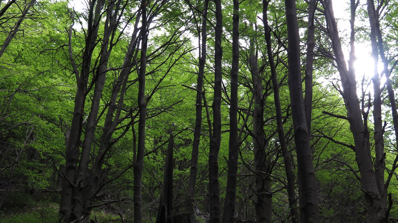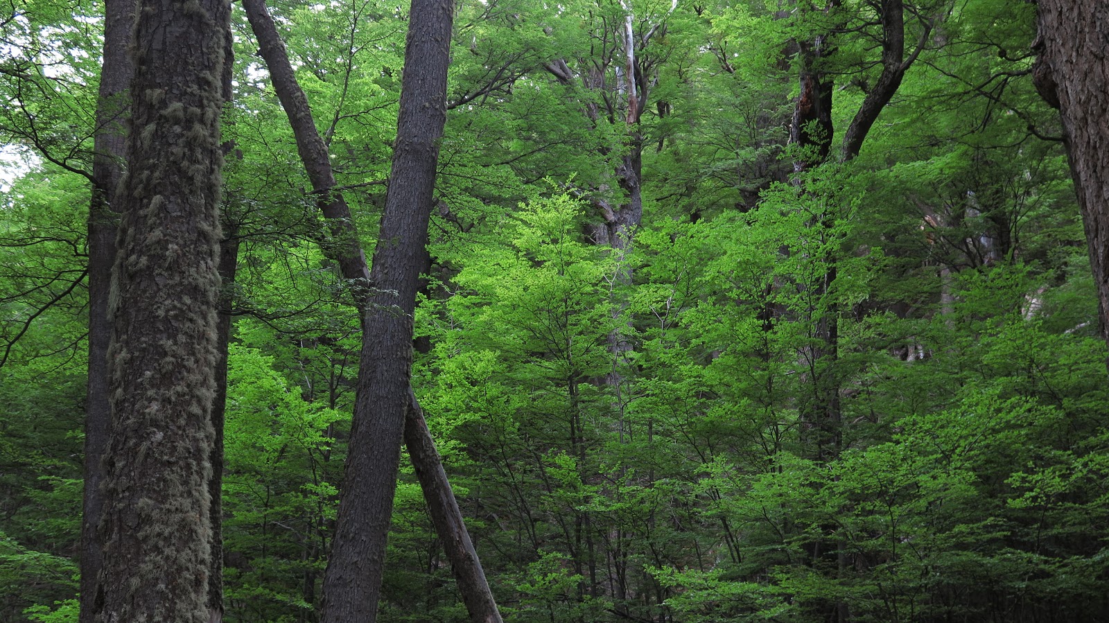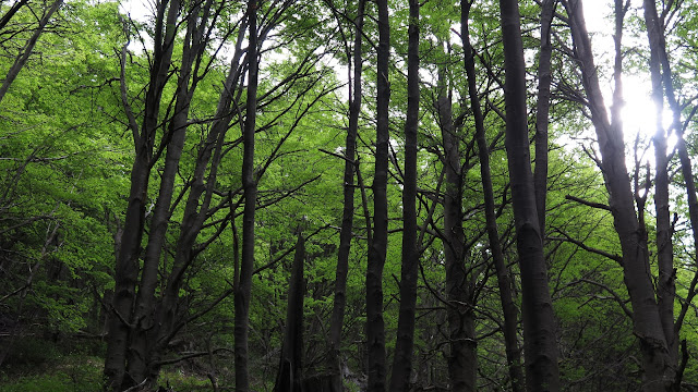 | Preciosas tonalidades verdes en el bosque, de regreso al Campamento Chileno. |