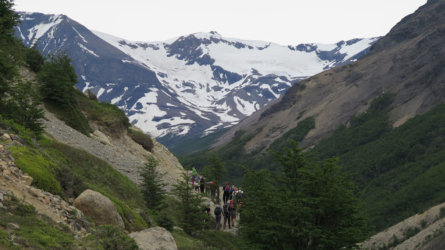 Por fin decidimos reemprender la marcha, descendiendo por el mismo camino por donde hemos subido. Nos lleva aproximadamente 2 horas regresar al Campamento Chileno.