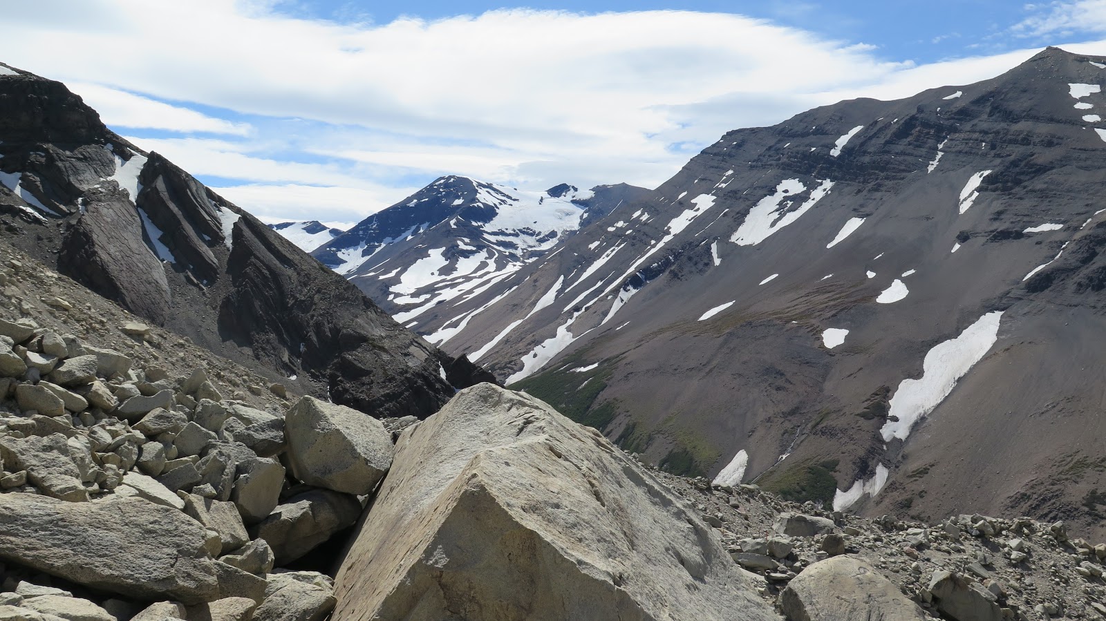 Caminamos durante un buen rato por unas laderas pedregosas, llaneando e incluso descendiendo un poco.